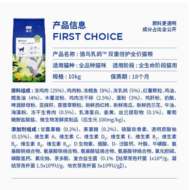 蓝氏猫粮猎鸟乳鸽火鸡冻干10kg20斤全阶段成多猫家庭猫繁育