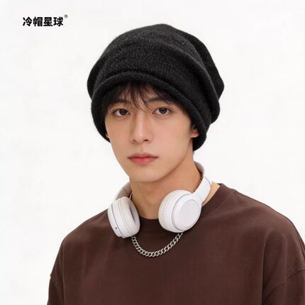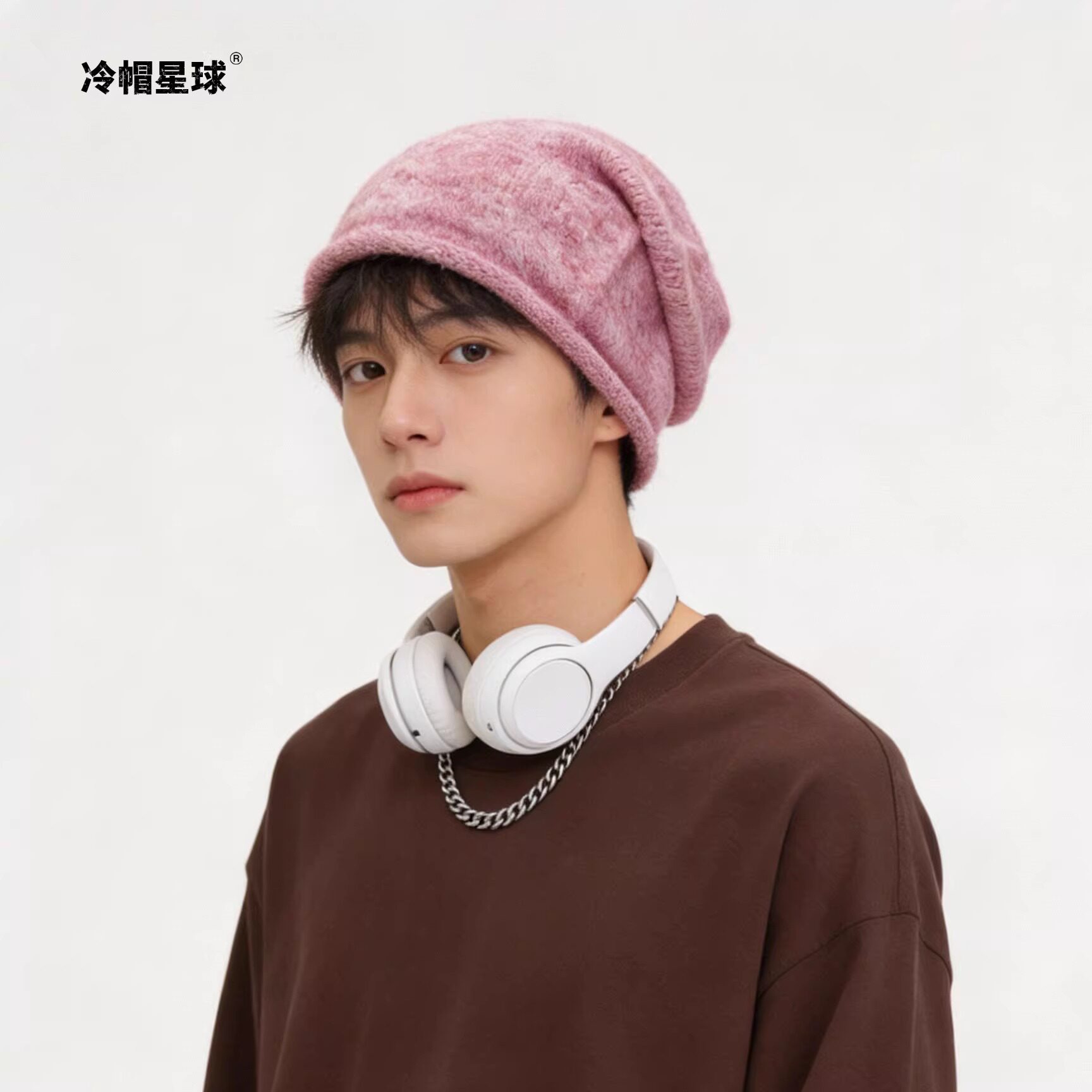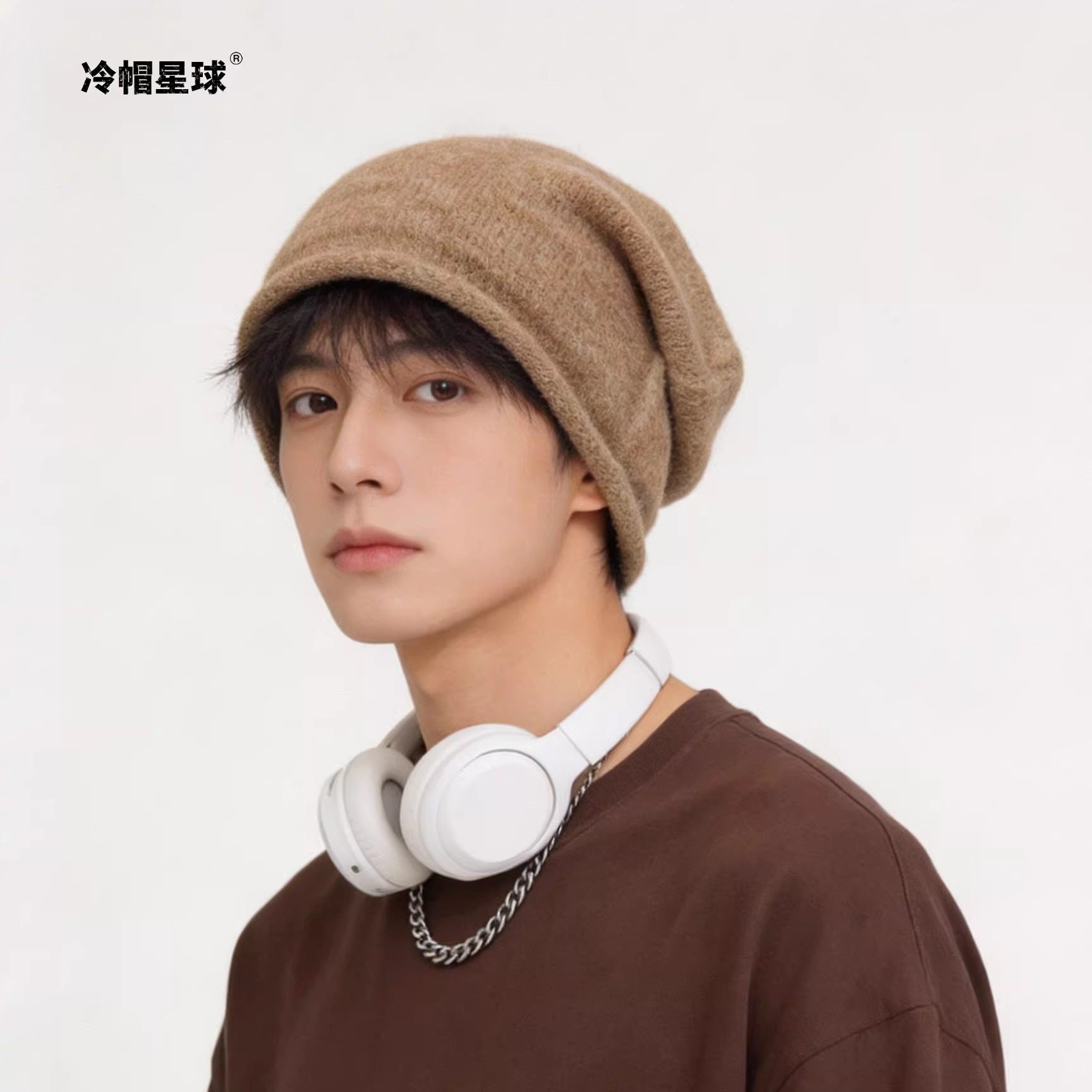 冷帽星球-羊毛秋冬毛线卷边堆堆帽显脸小大头围百搭冷帽男保暖