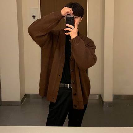 长袖V领开衫修身型冬2024秋季年男装针织衫毛衣时尚都市青年外套