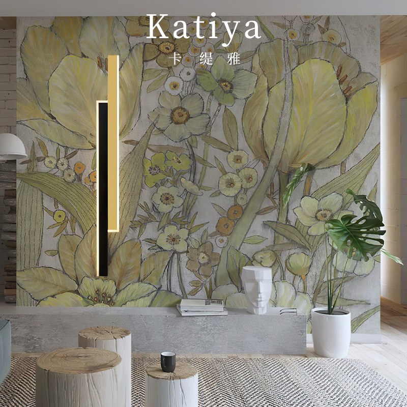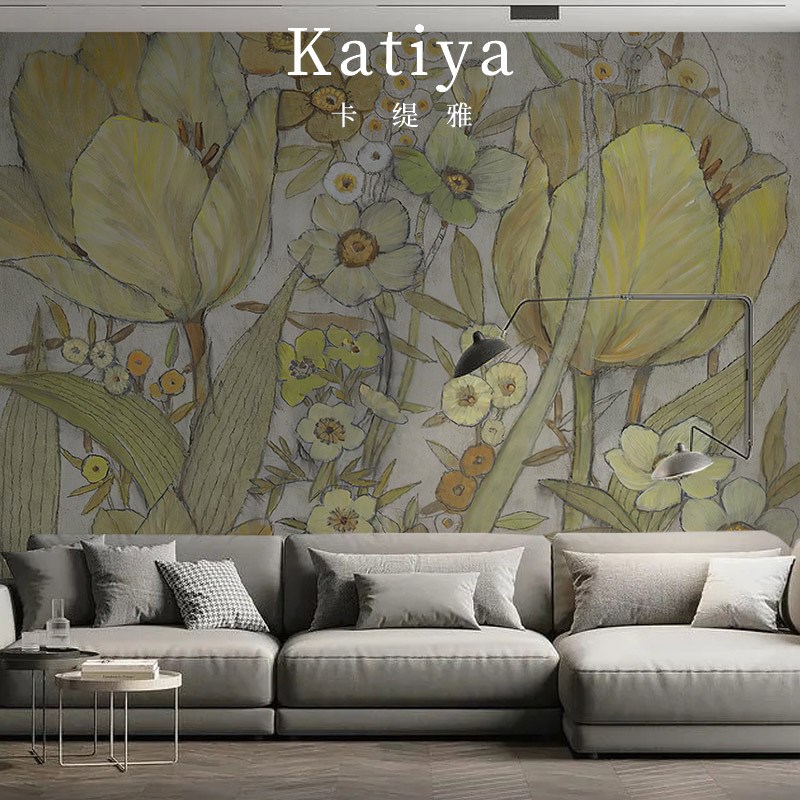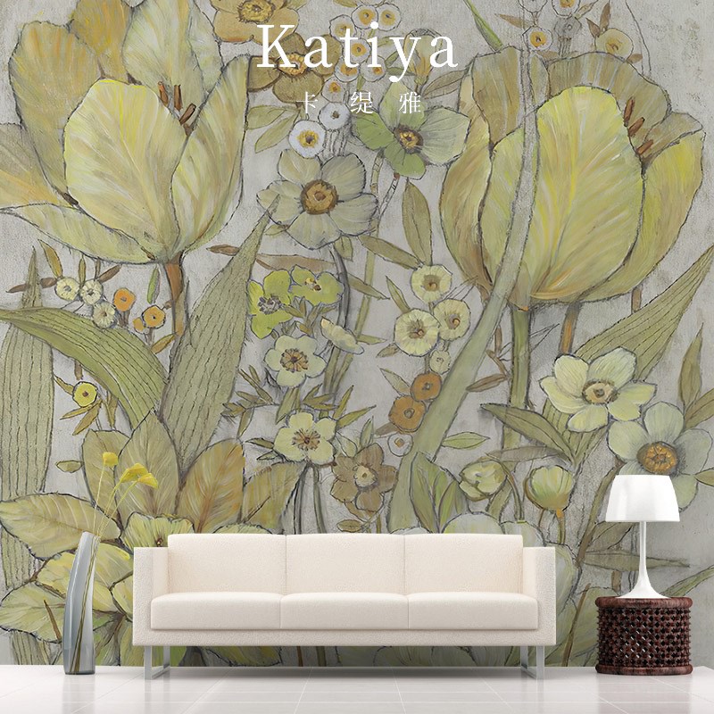 定制手绘欧式黄色花朵q电视背景墙壁纸沙发影视墙布卧室艺术3D壁