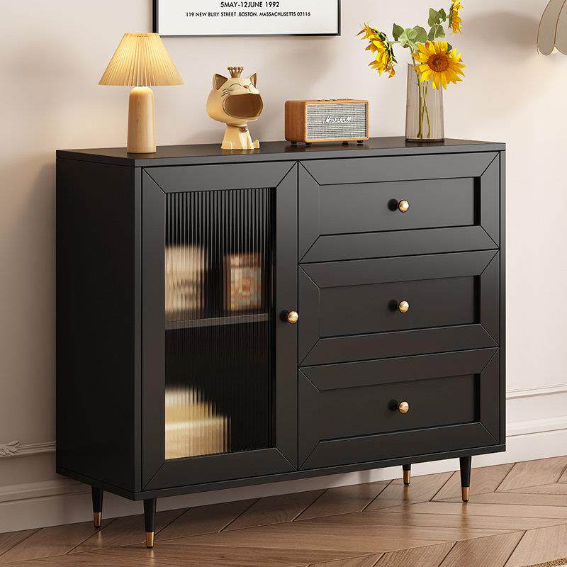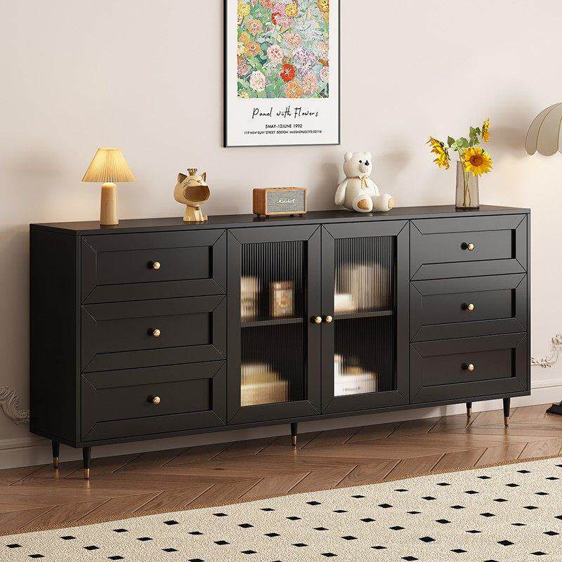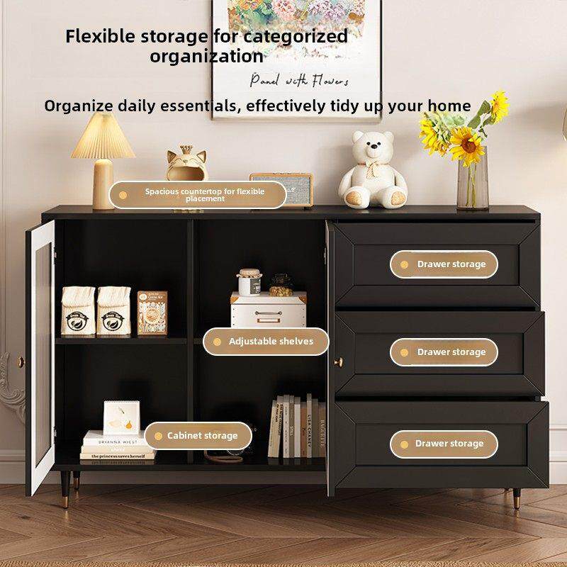 餐边柜多功能茶水柜覆古黑色靠墙收纳柜子简约现代厨房客厅置物柜
