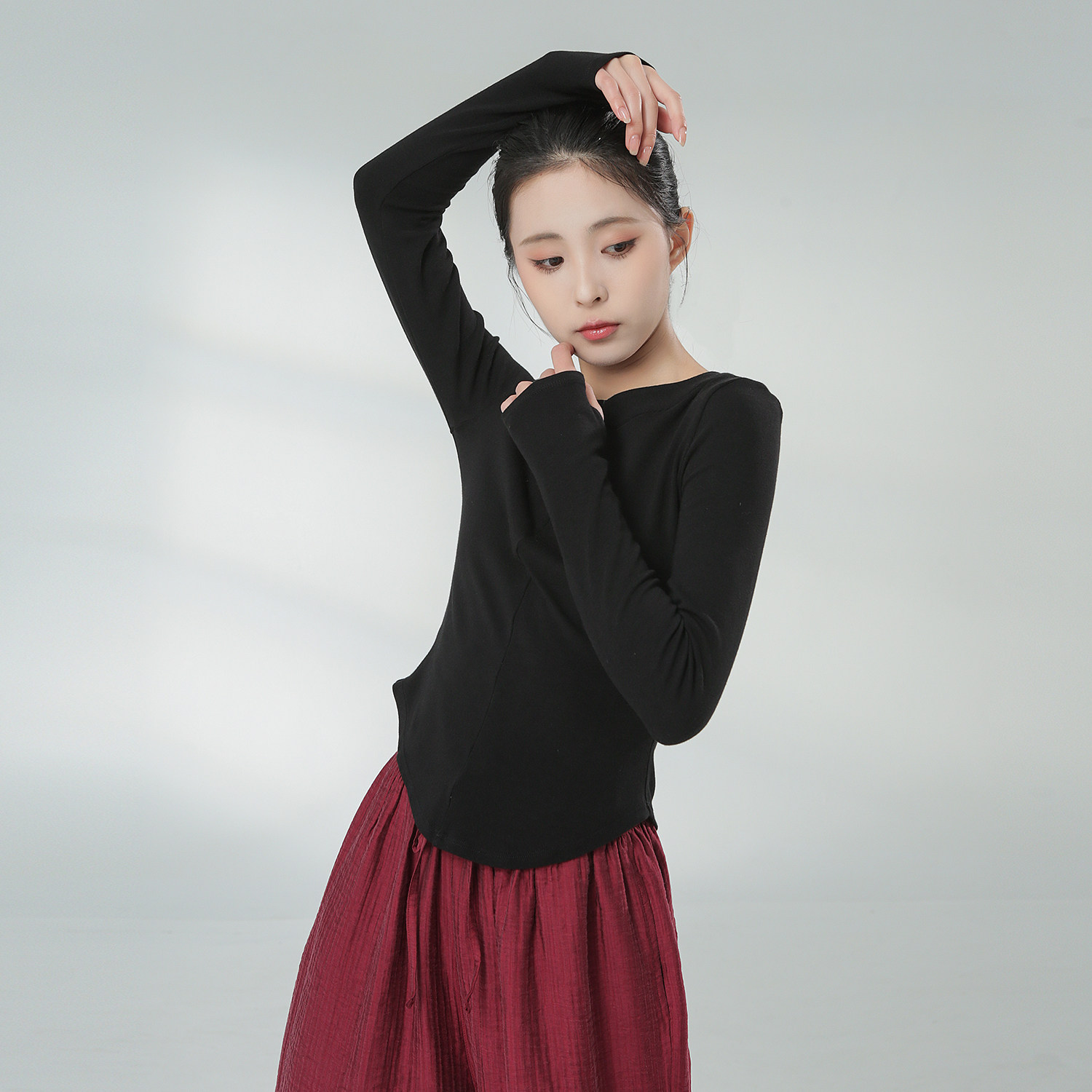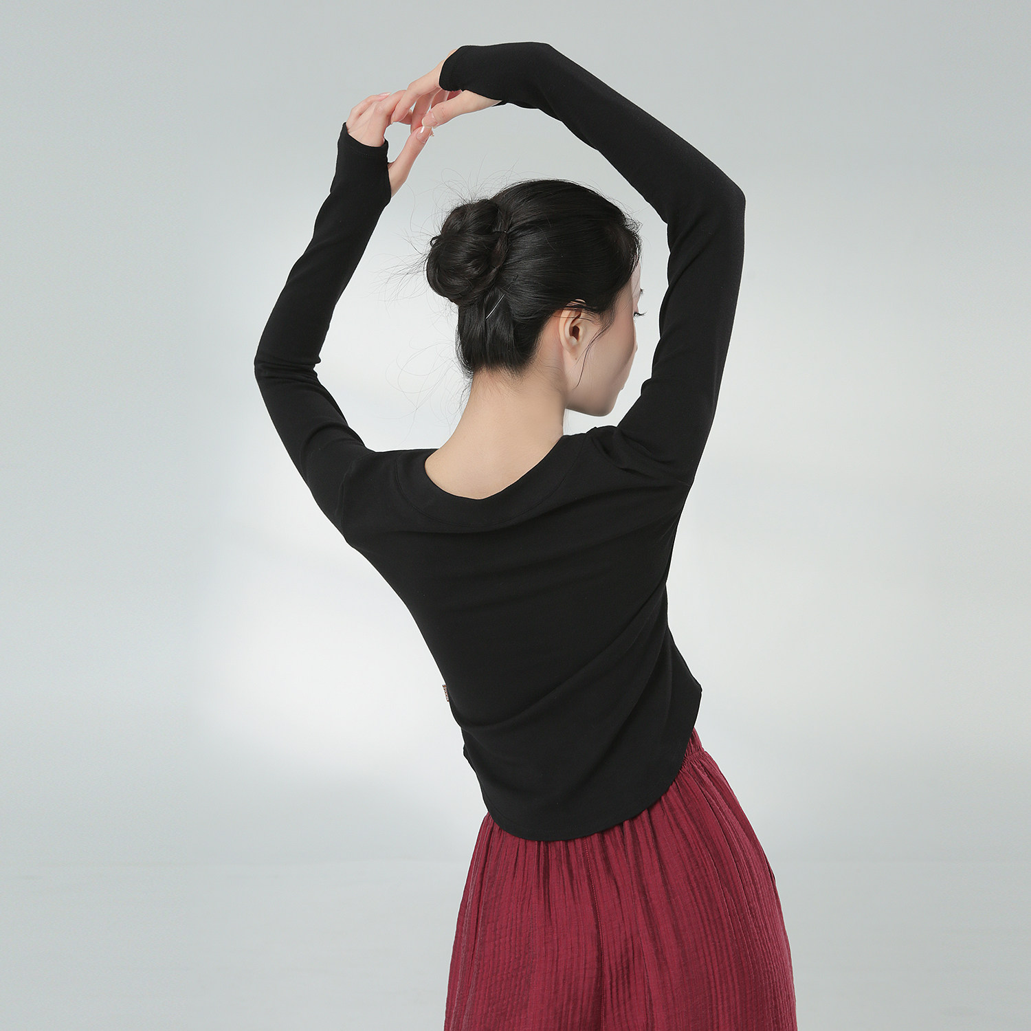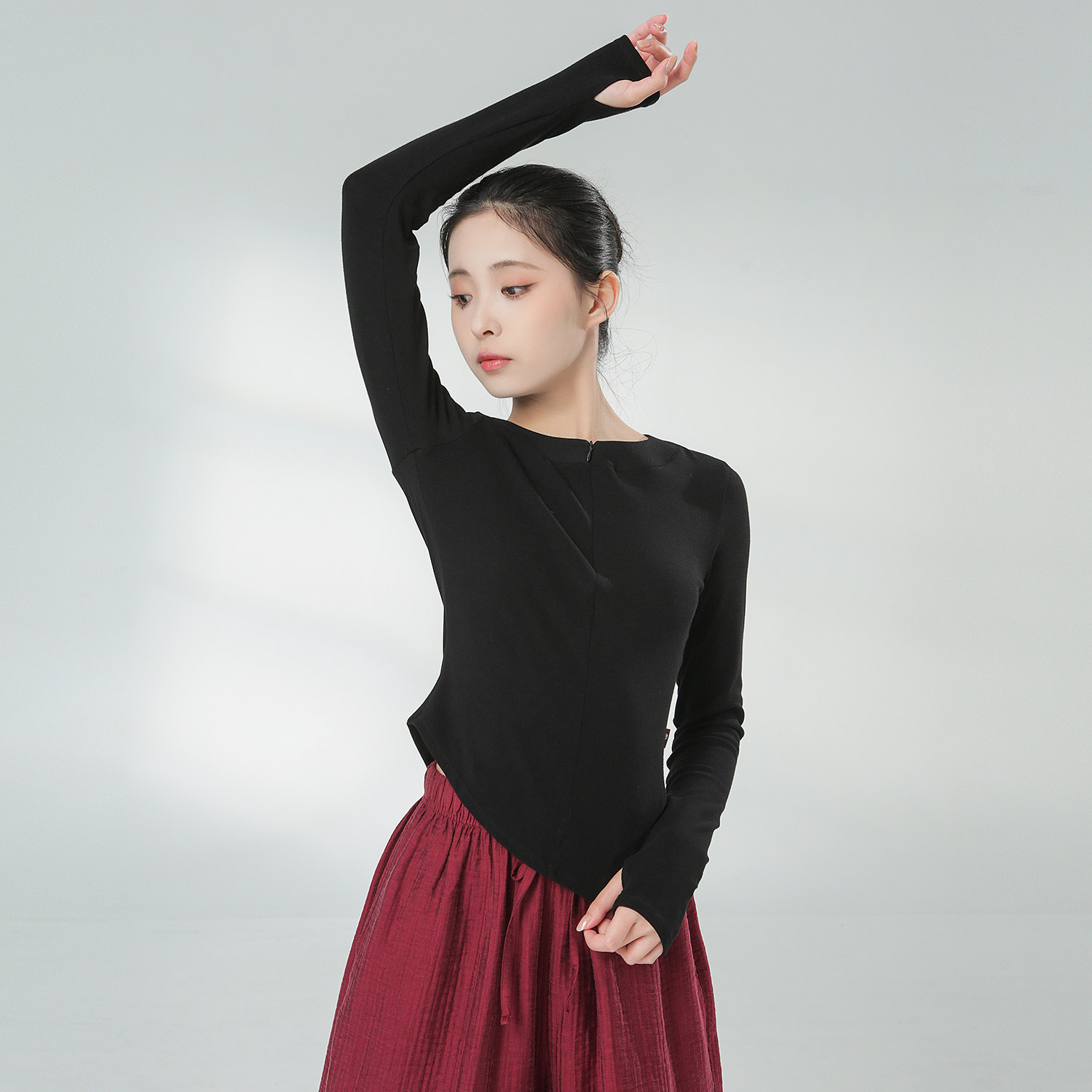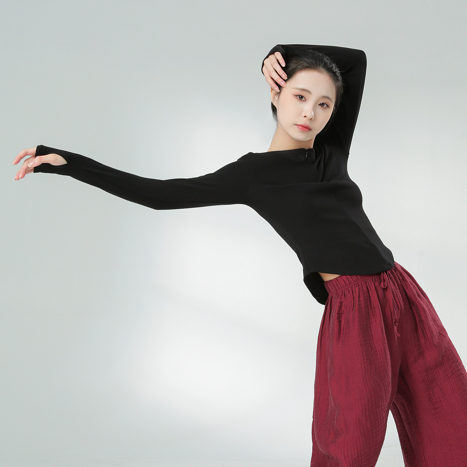 小茉莉黑色现代舞套指长袖舞蹈上衣女款新款显瘦跳舞专用服装成人