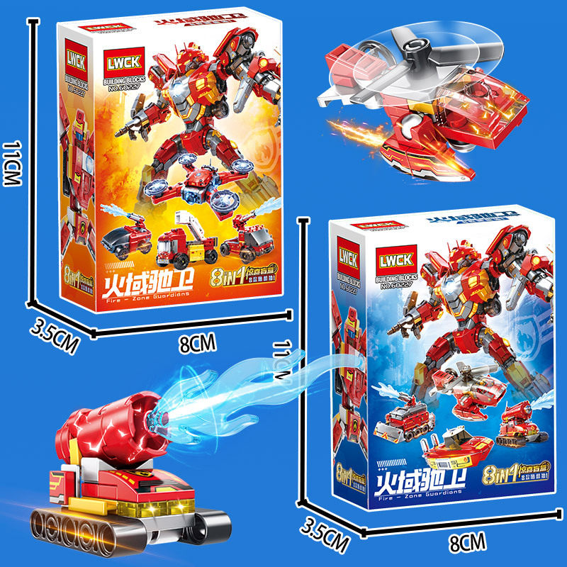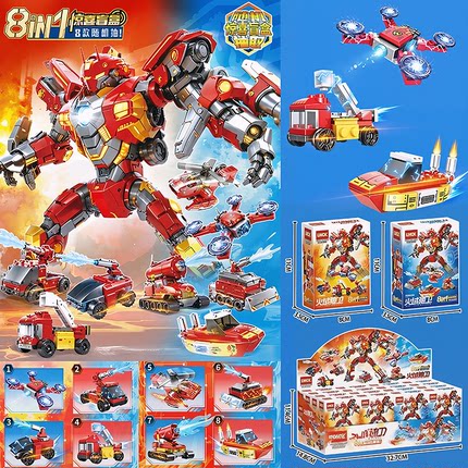 乐玩60227火域驰卫合体机器人机甲模型男孩消防车拼装积木玩具