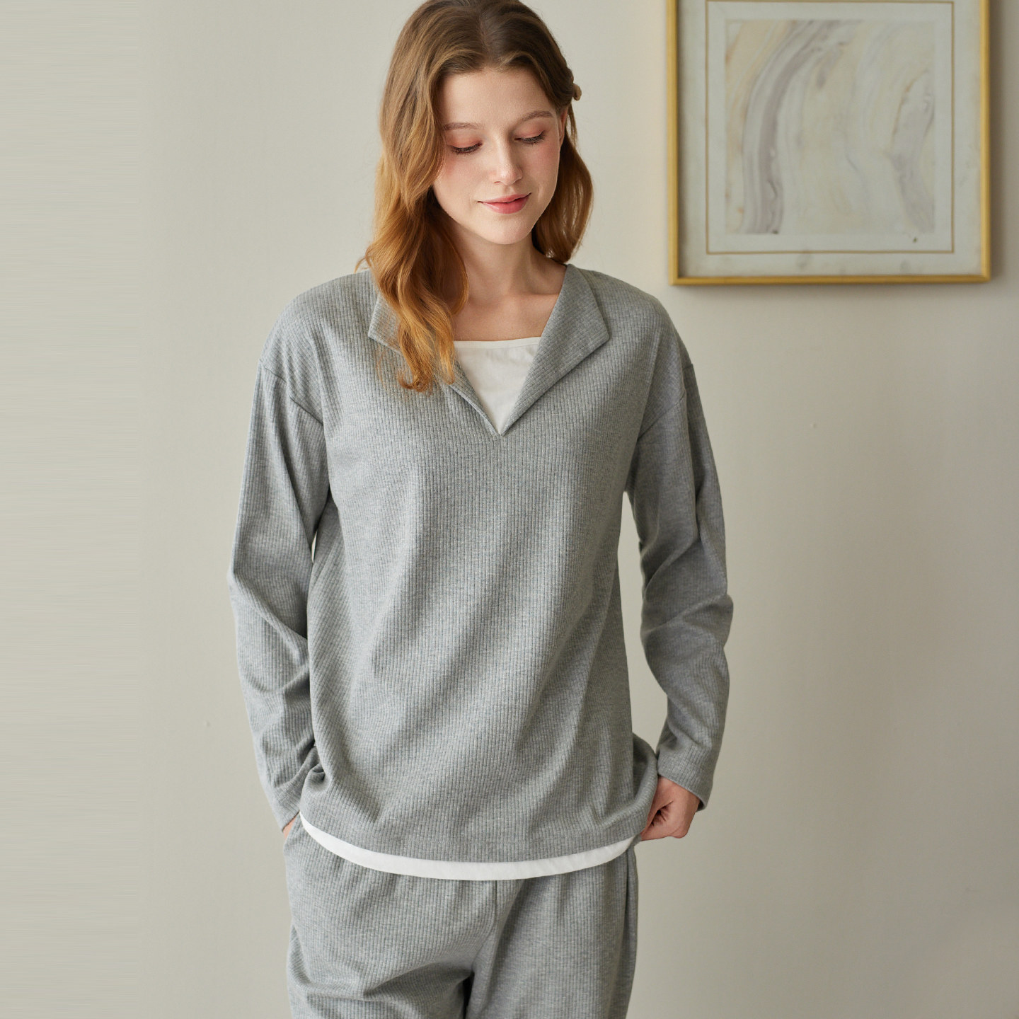 芬腾睡衣女春秋季纯棉长袖套装女款简约时尚休闲可外穿家居服秋天