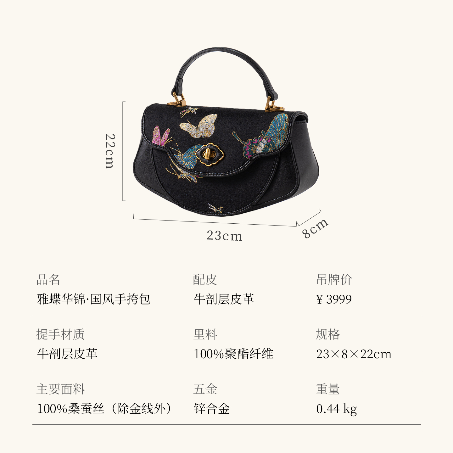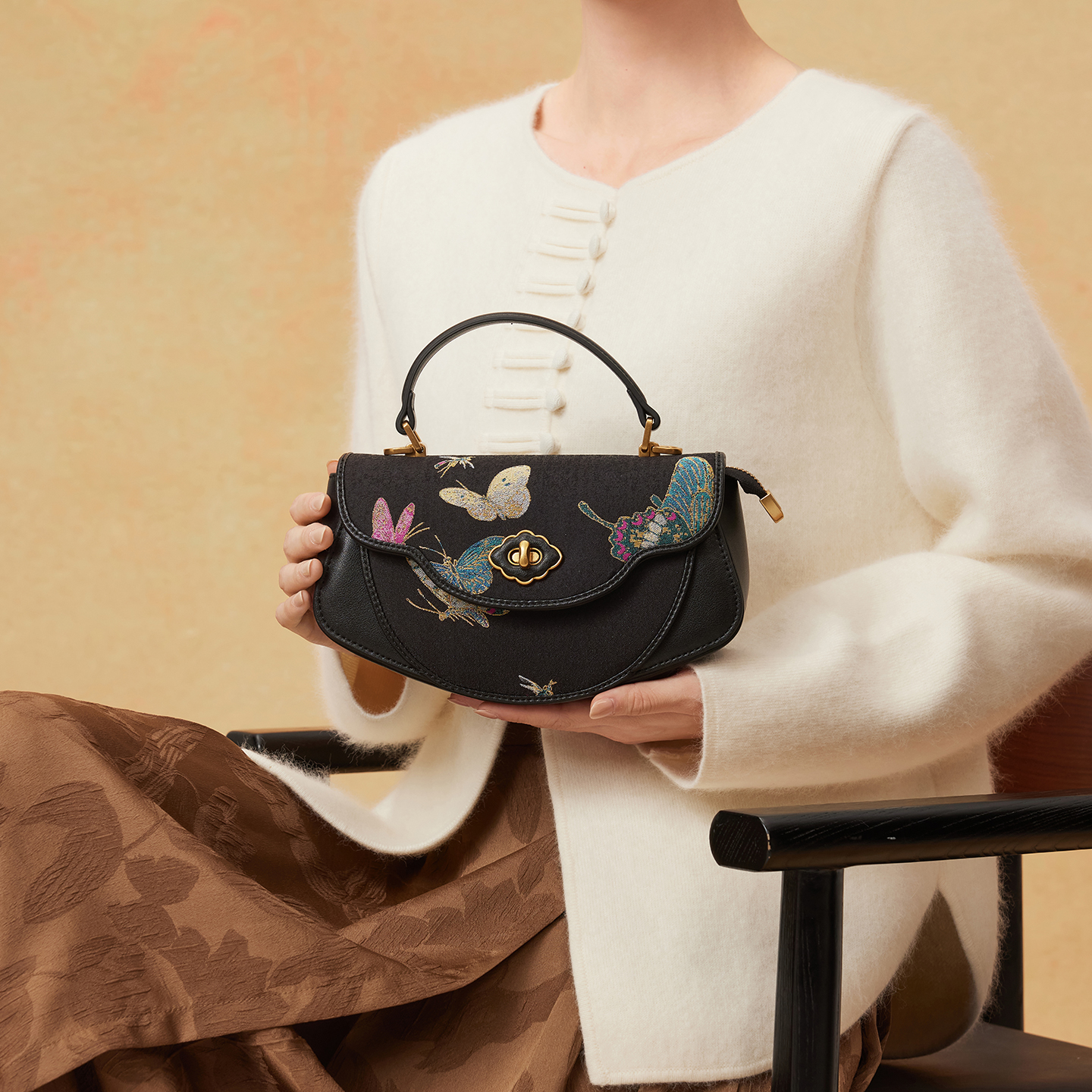 2025新款上久楷名家宋锦晴春蝶戏真皮手提包单肩斜挎包送长辈礼品