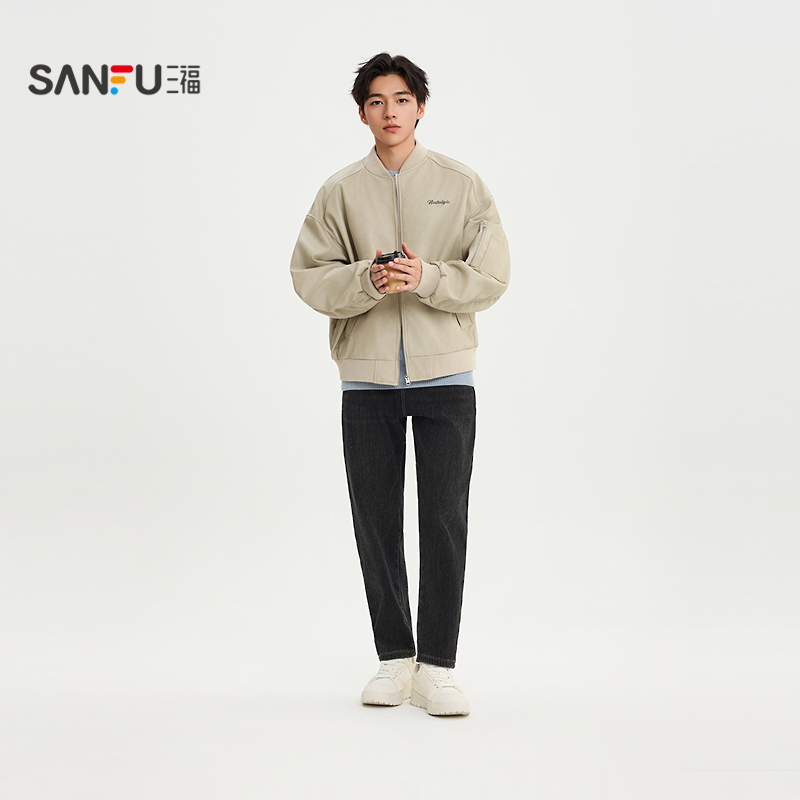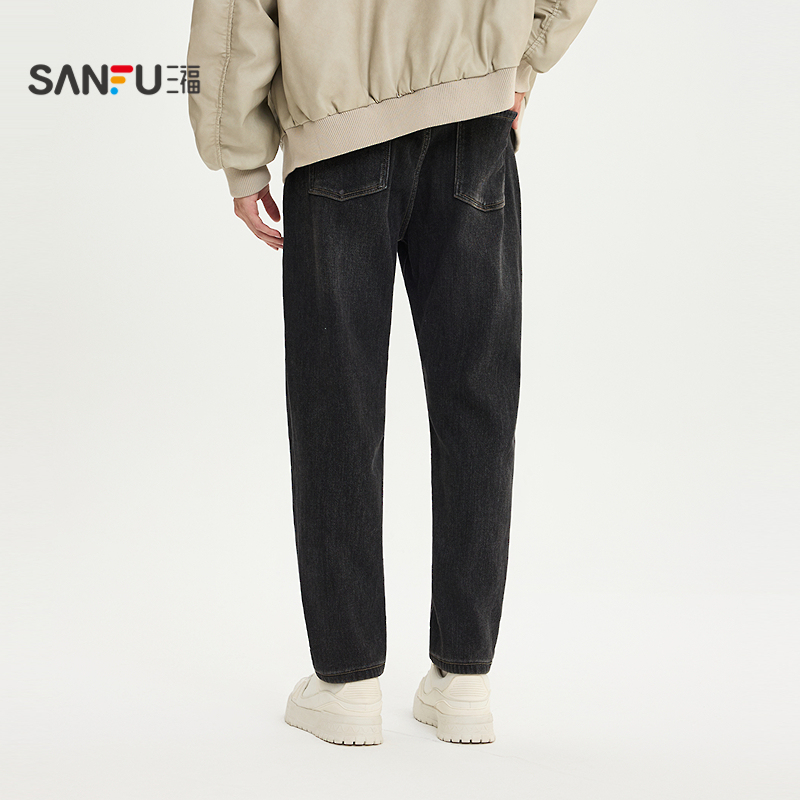 三福2025冬季男士表袋刺绣锥形牛仔裤 都市经典合身长裤512605