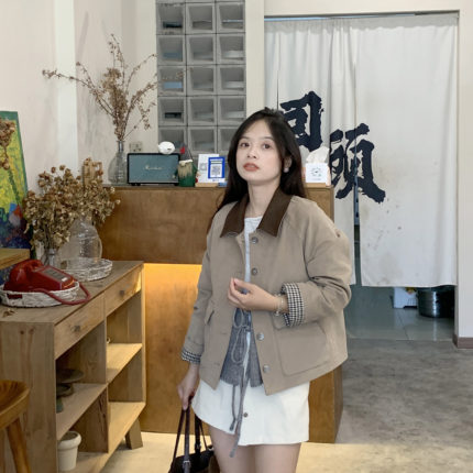 PERRY自制小个子拼色翻领短款风衣外套小码150xxs