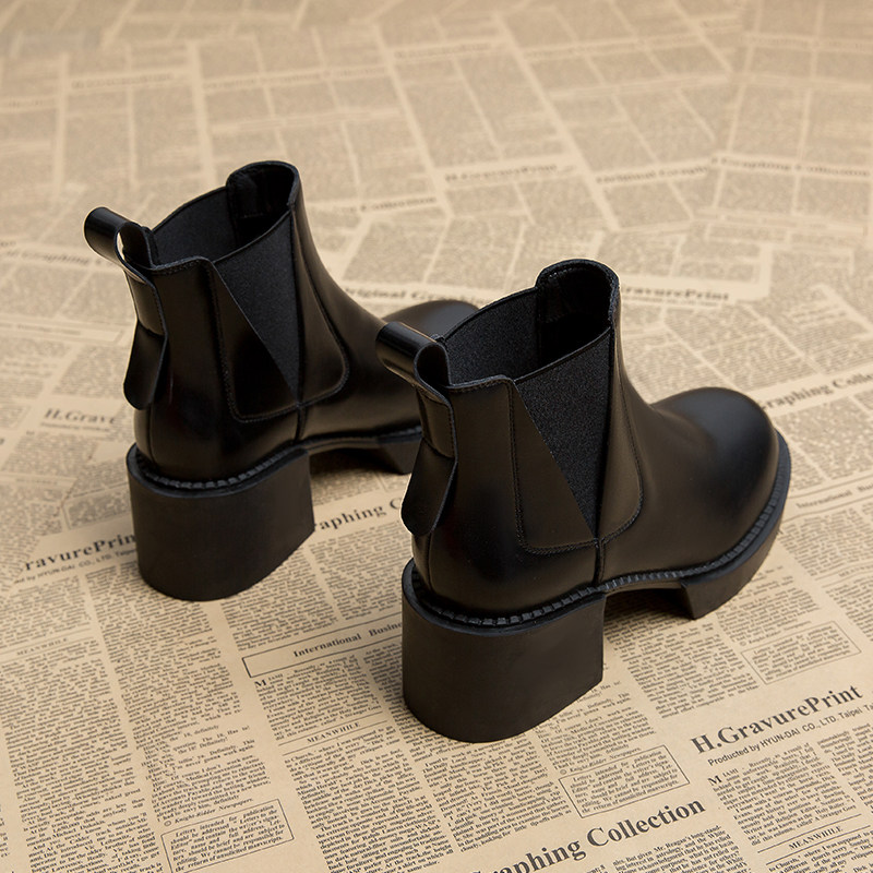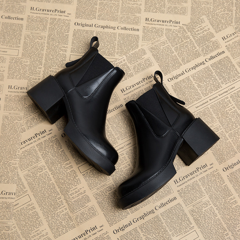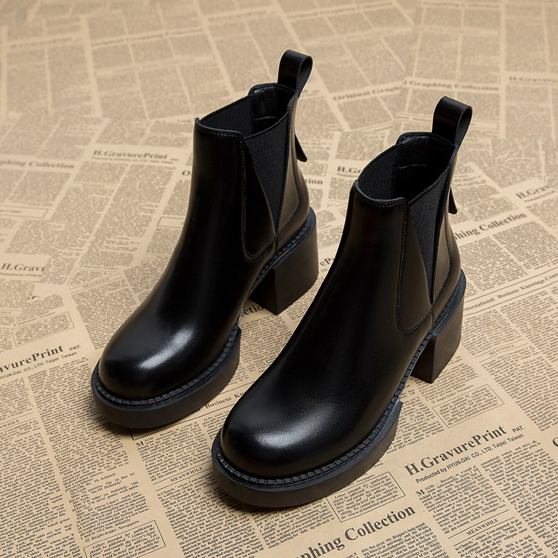 巨好看短靴女厚底高跟切尔西靴子女秋冬季2025新款法式粗跟瘦瘦靴