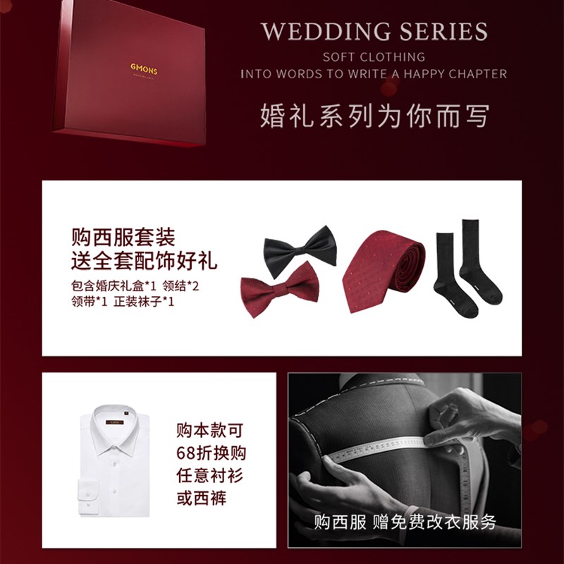 【婚庆礼盒】吉约蒙男士西服套装新郎结婚礼服西装黑色商务正装
