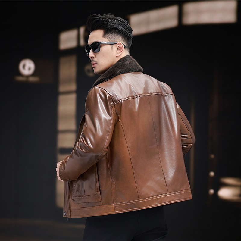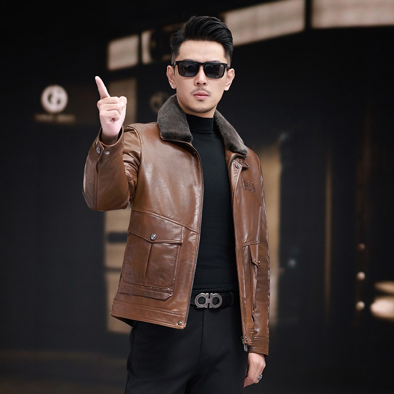 水貂内胆皮衣男真皮衣外套男冬季夹克山羊皮休闲2026新款保暖海宁