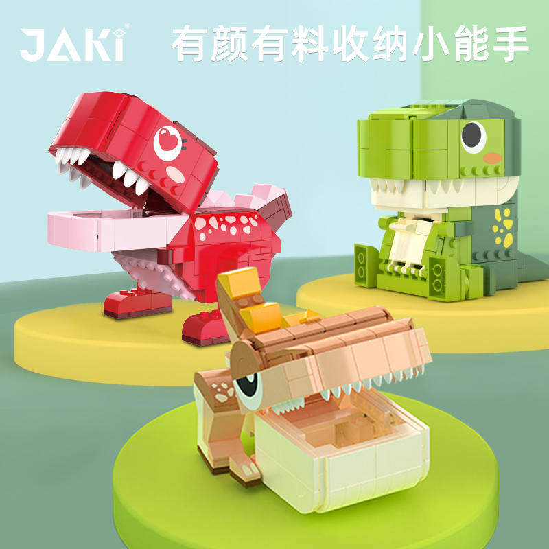 JAKI佳奇霸王龙积木礼盒拼装玩具益智恐龙拼搭摆件送男女朋友礼物