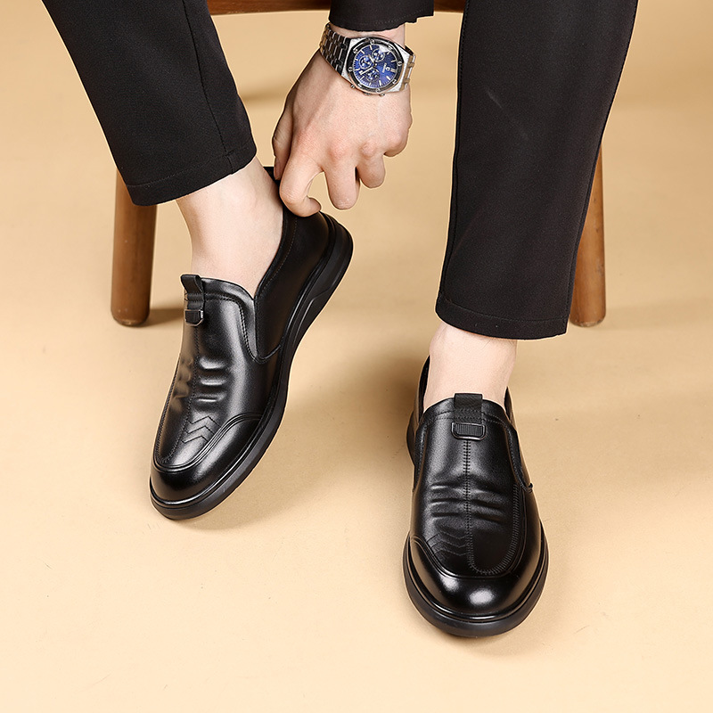 秋季新款男士皮鞋皮商务休闲皮鞋男一脚蹬爸爸鞋头层牛皮男鞋子z