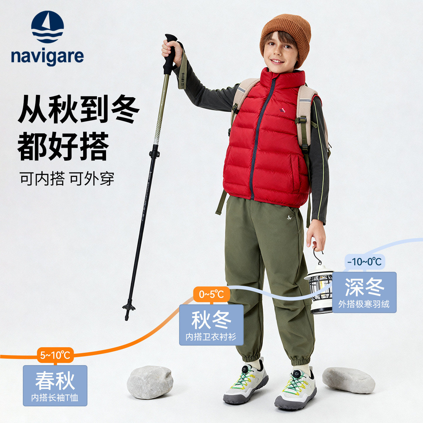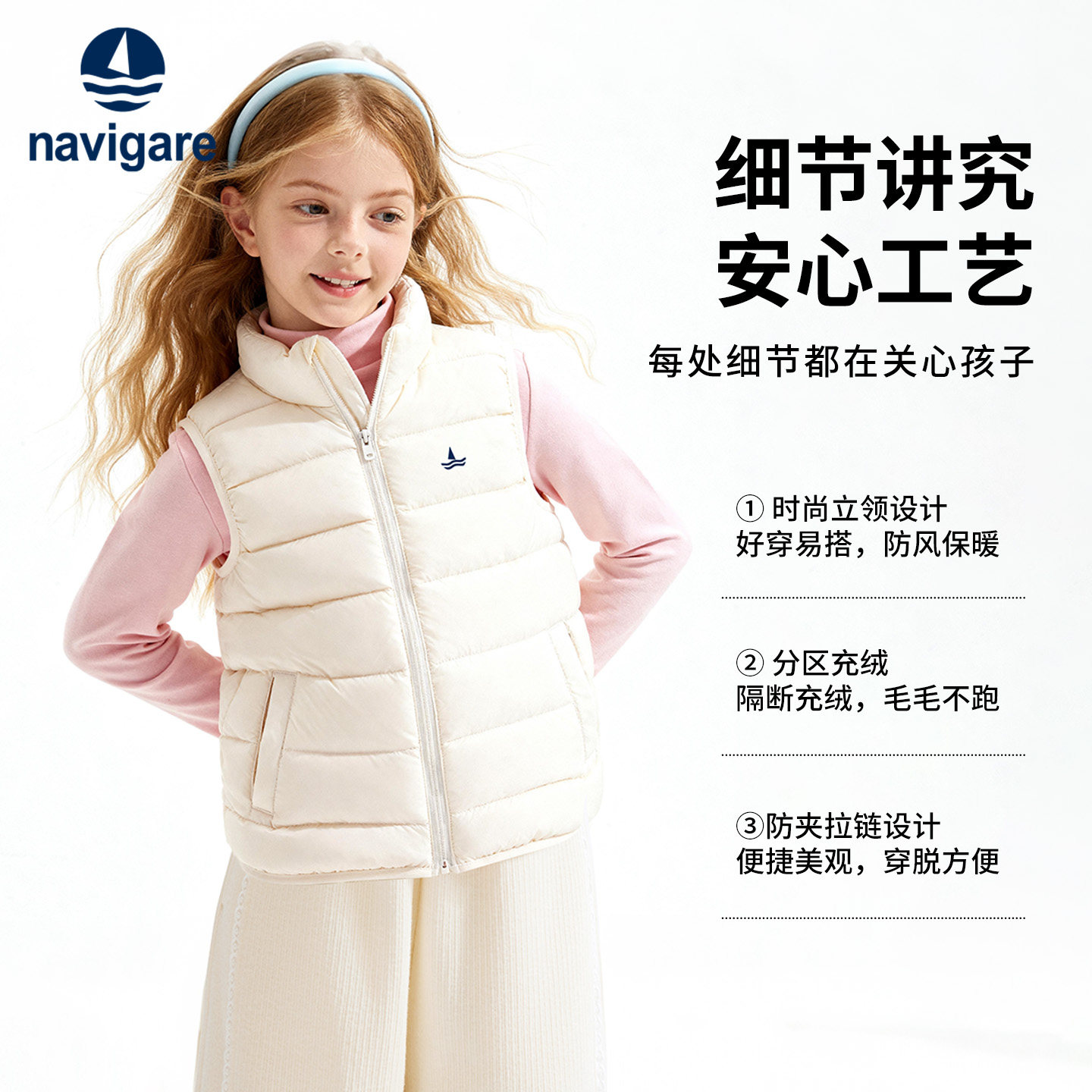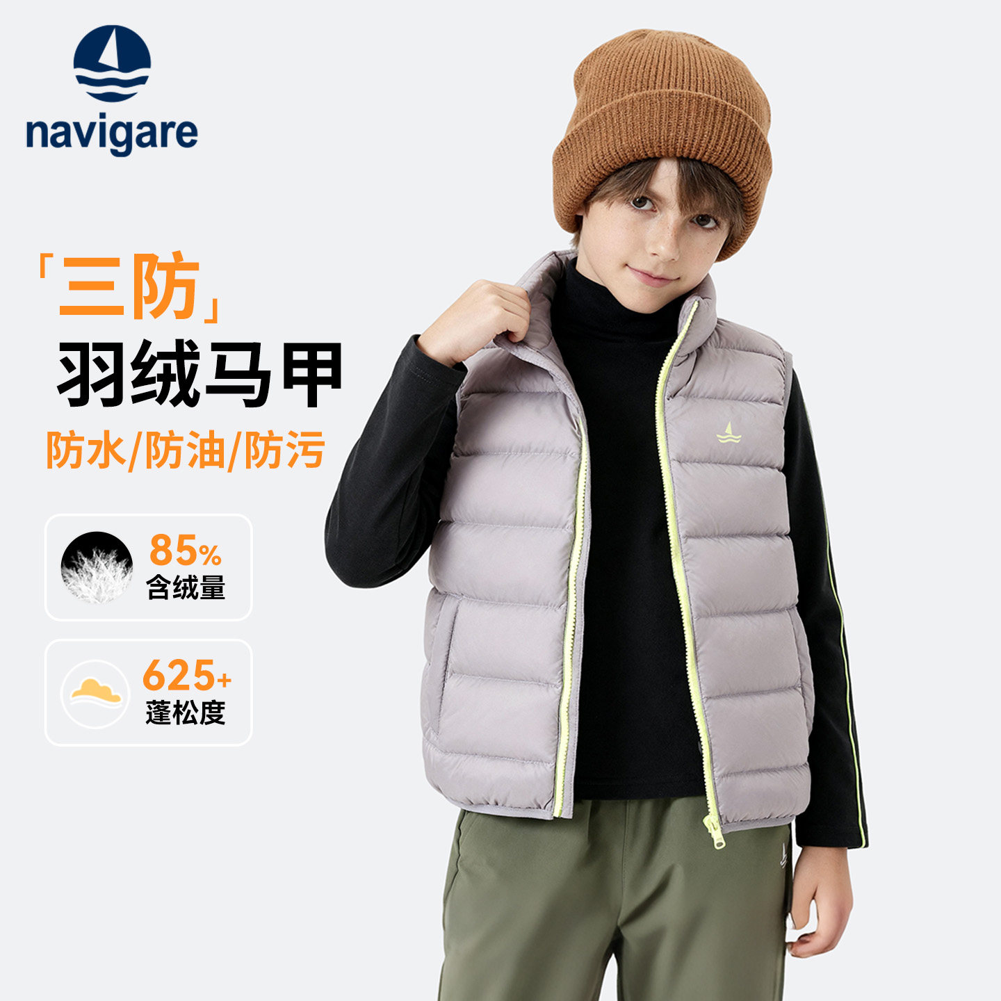 Navigare意大利小帆船男孩马甲2025新款春秋冬男女童保暖羽绒外套