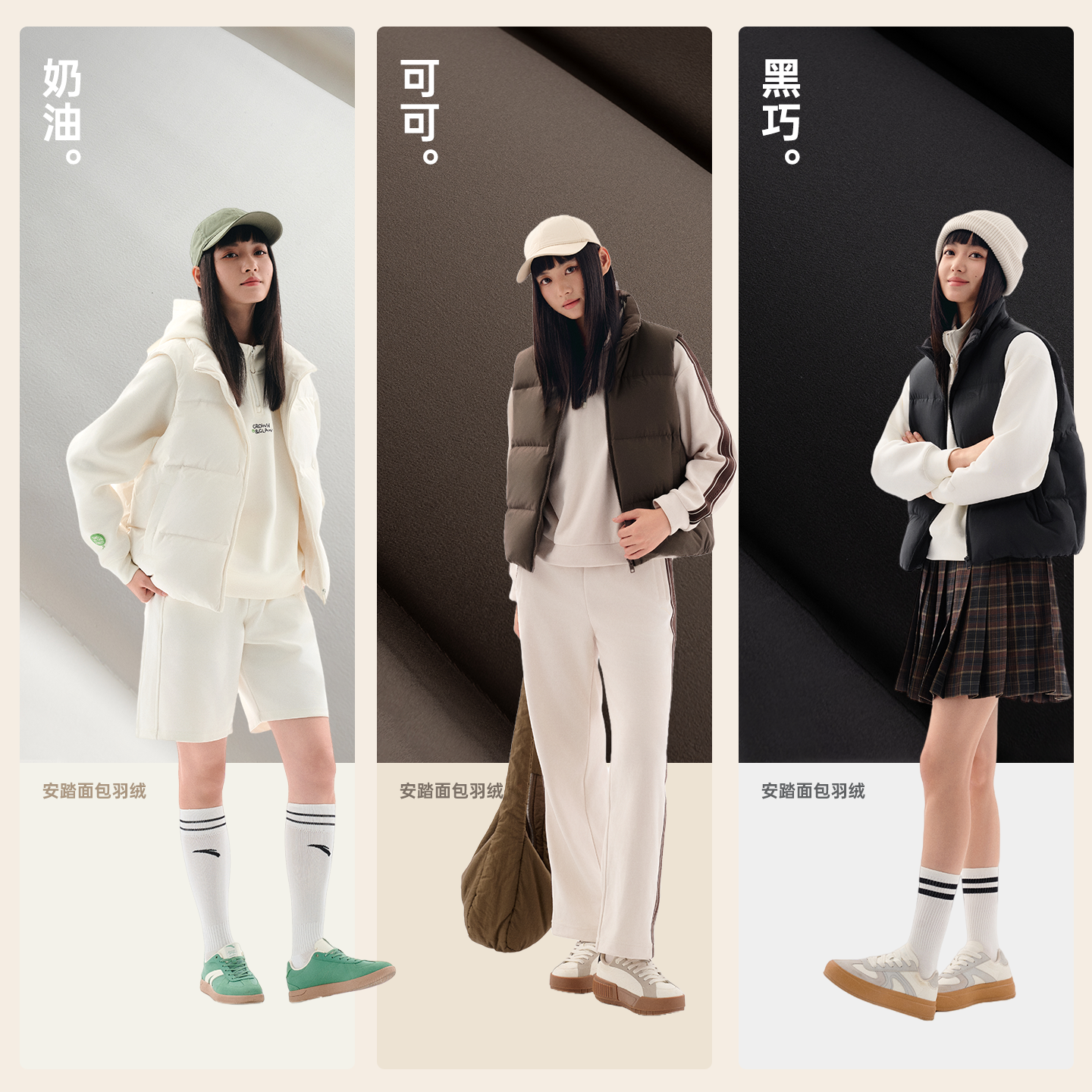 安踏面包羽绒丨防泼水羽绒马甲女士冬季休闲加厚保暖外套叠穿上衣