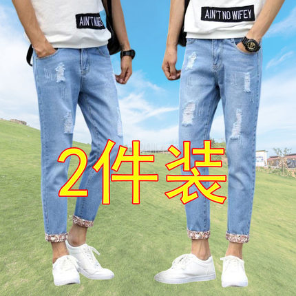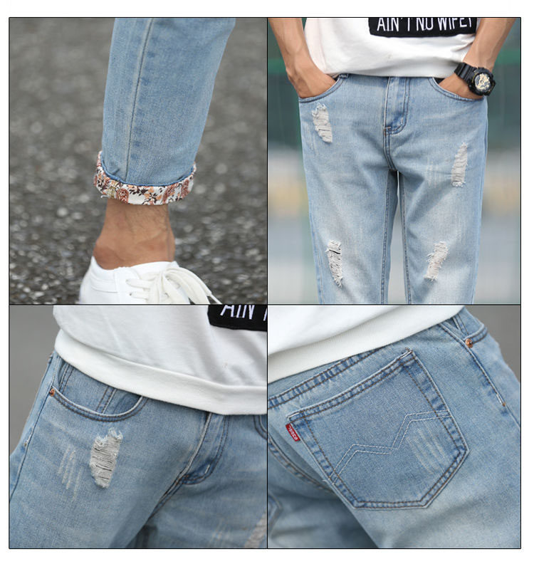 9分牛仔裤男四季款破洞