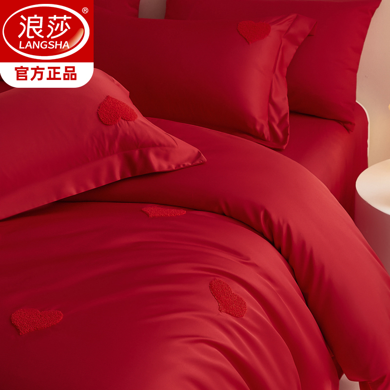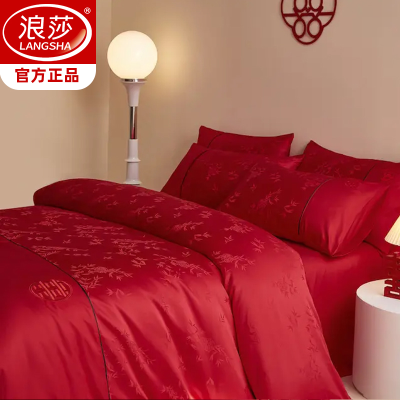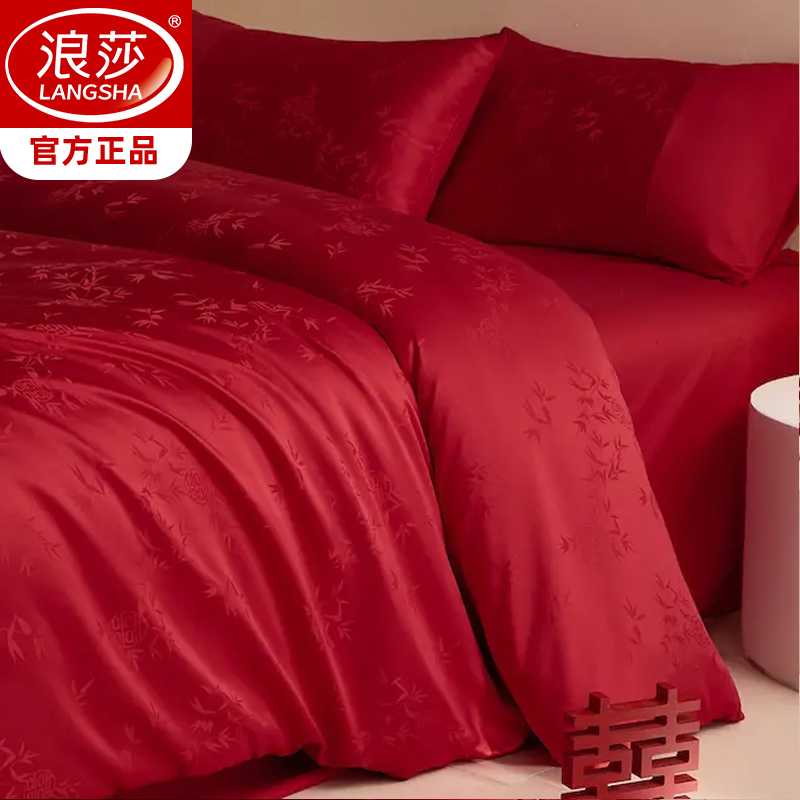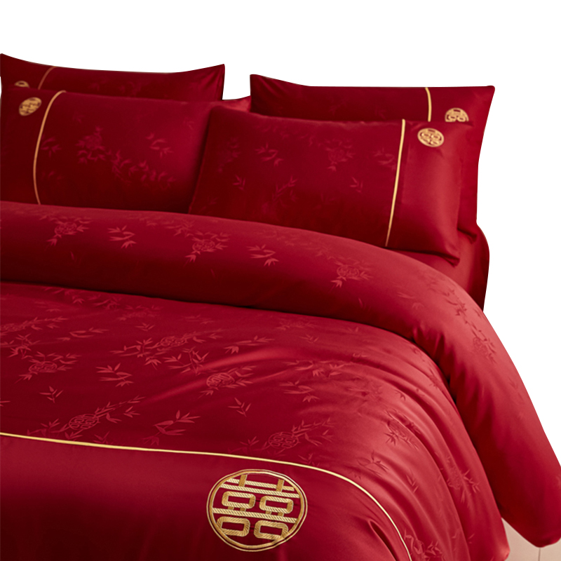 高档提花结婚床上四件套婚庆大红色非纯棉全棉被套新婚房喜被床单