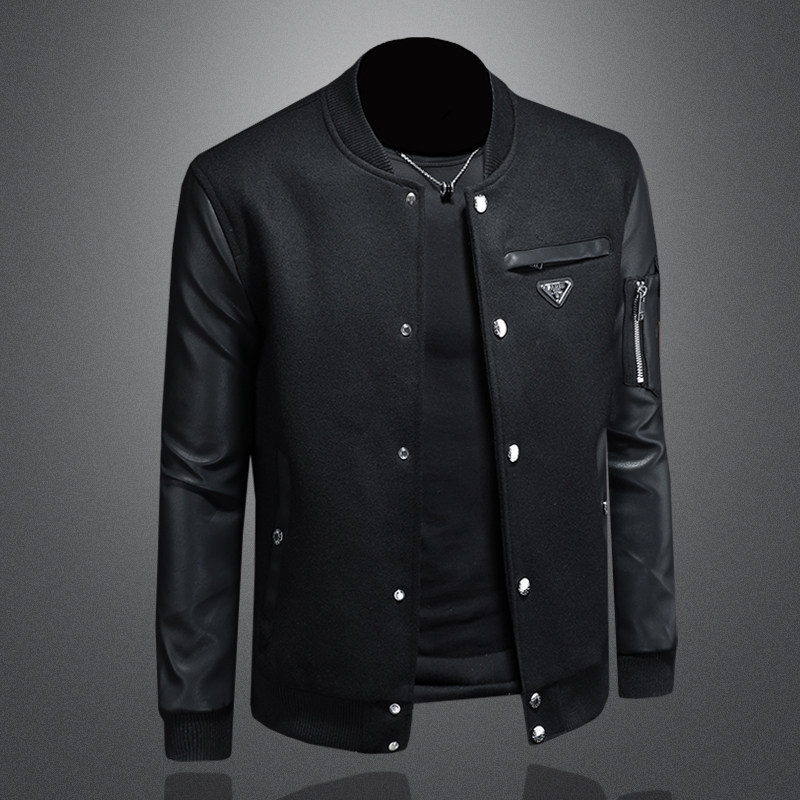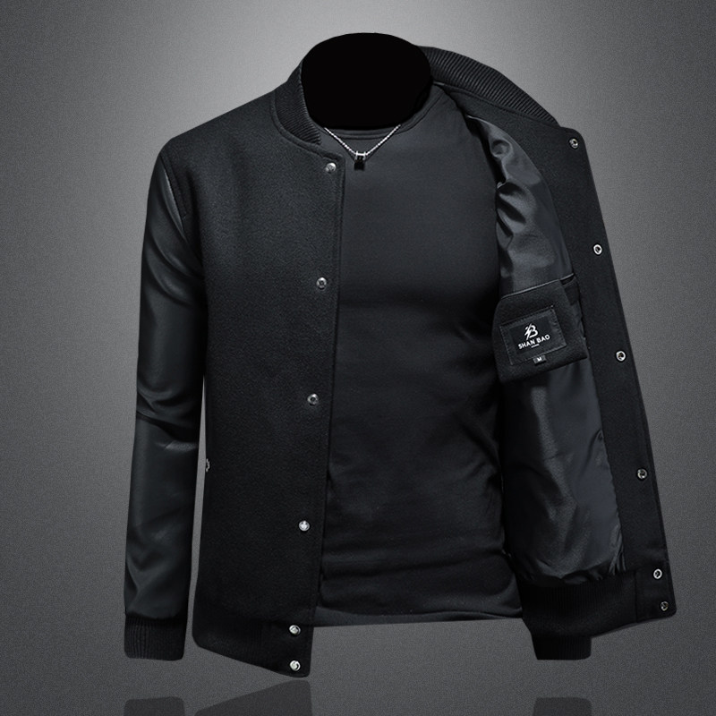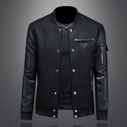 欧洲站潮流2026春季新款呢料拼接棒球领男士夹克外套休闲修身高端