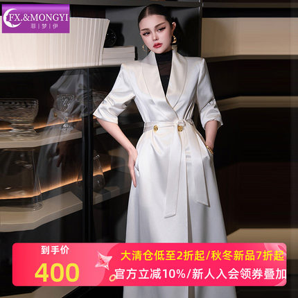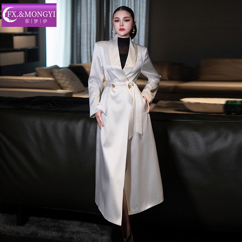 菲梦伊进口三醋酸白色西装风衣外套女秋季高端大气收腰中长款大衣