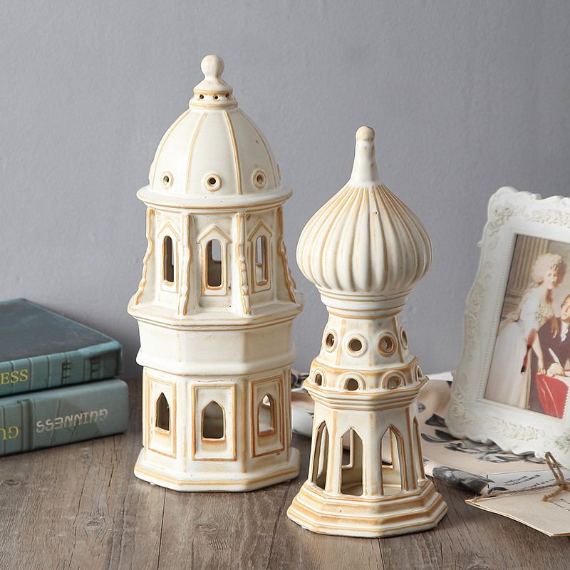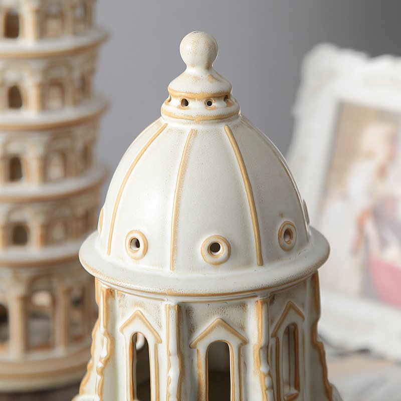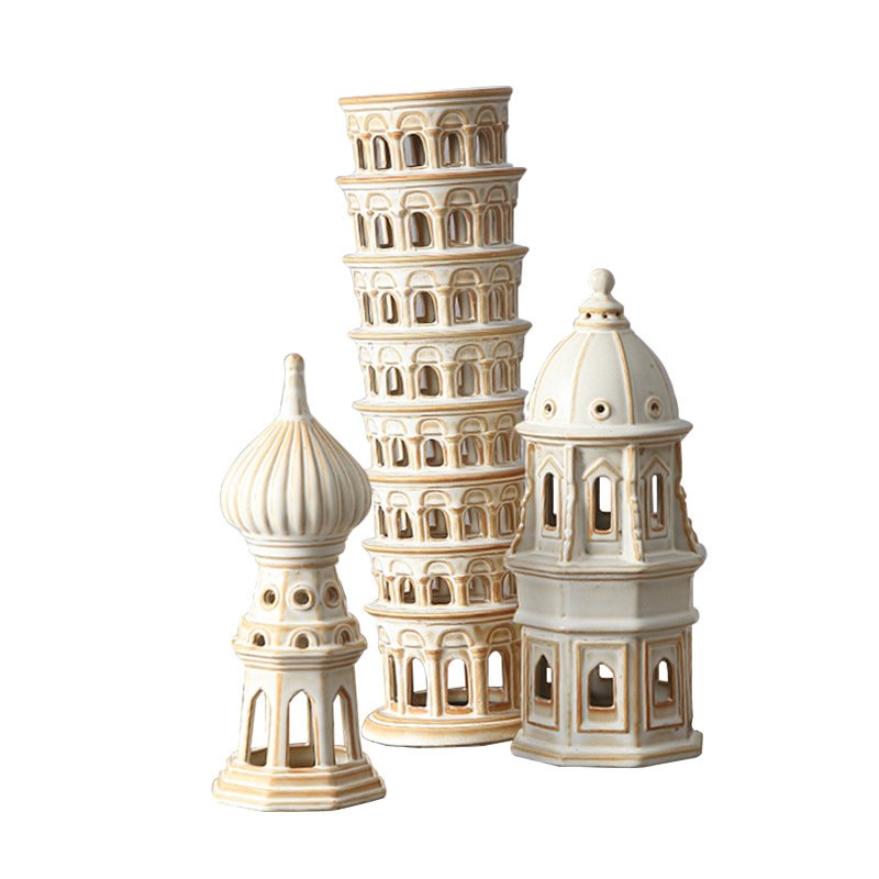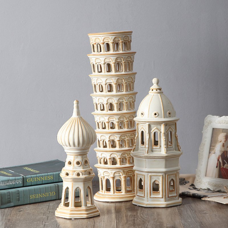 厂家 简约创意发哑光米黄花釉比萨斜塔陶瓷家居装饰工艺品摆件