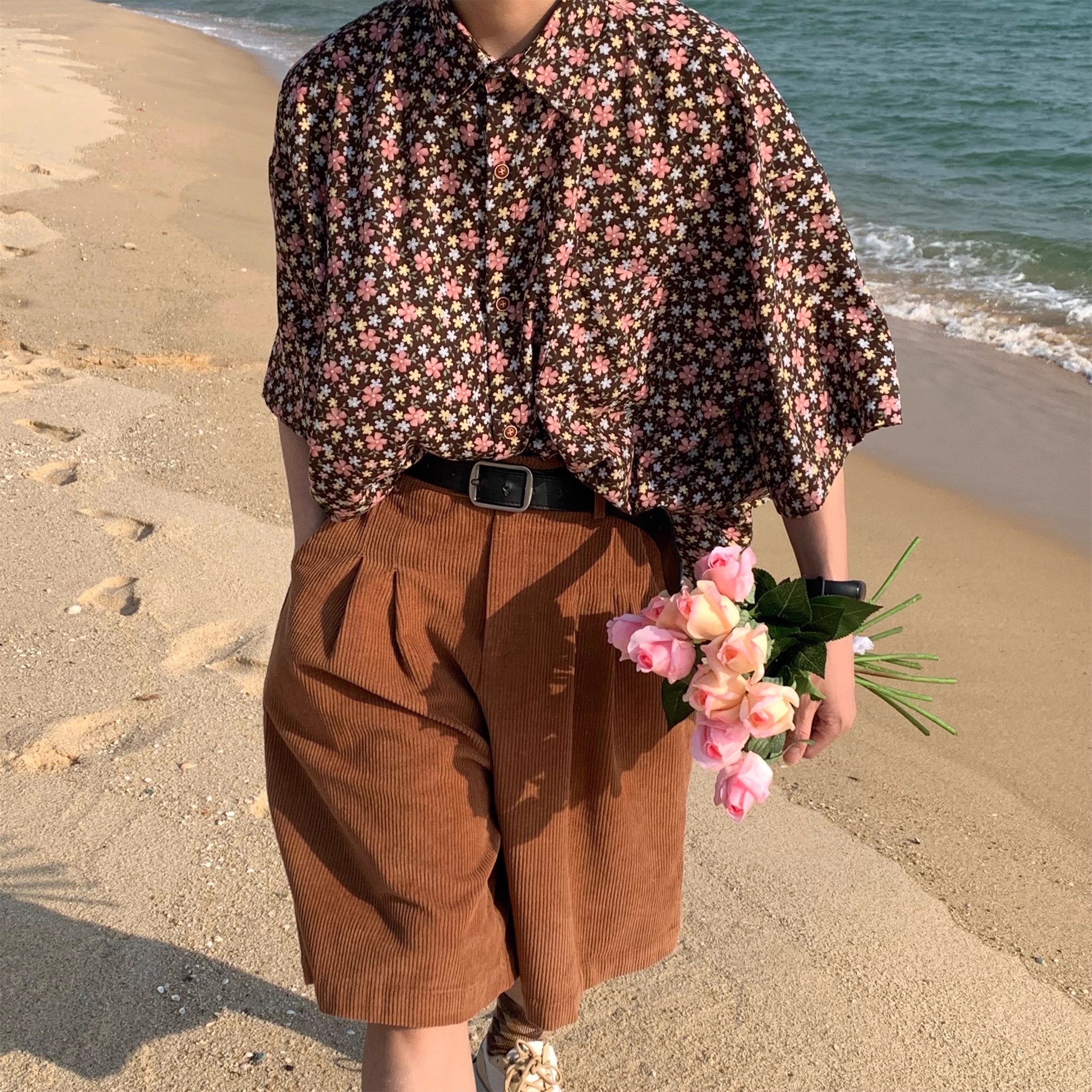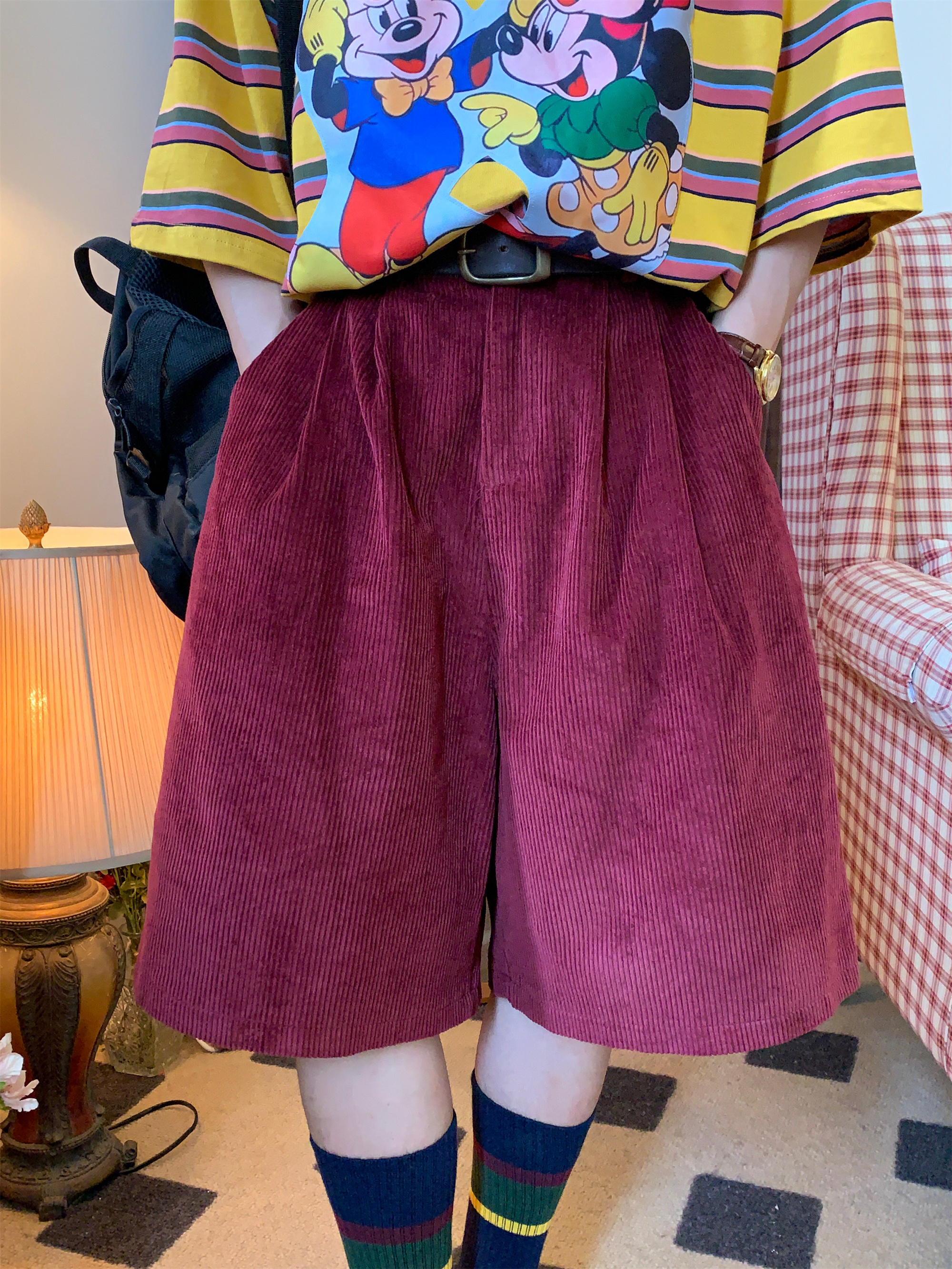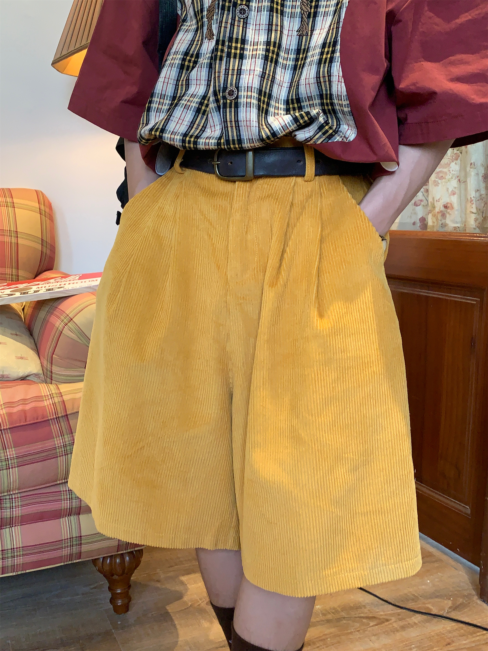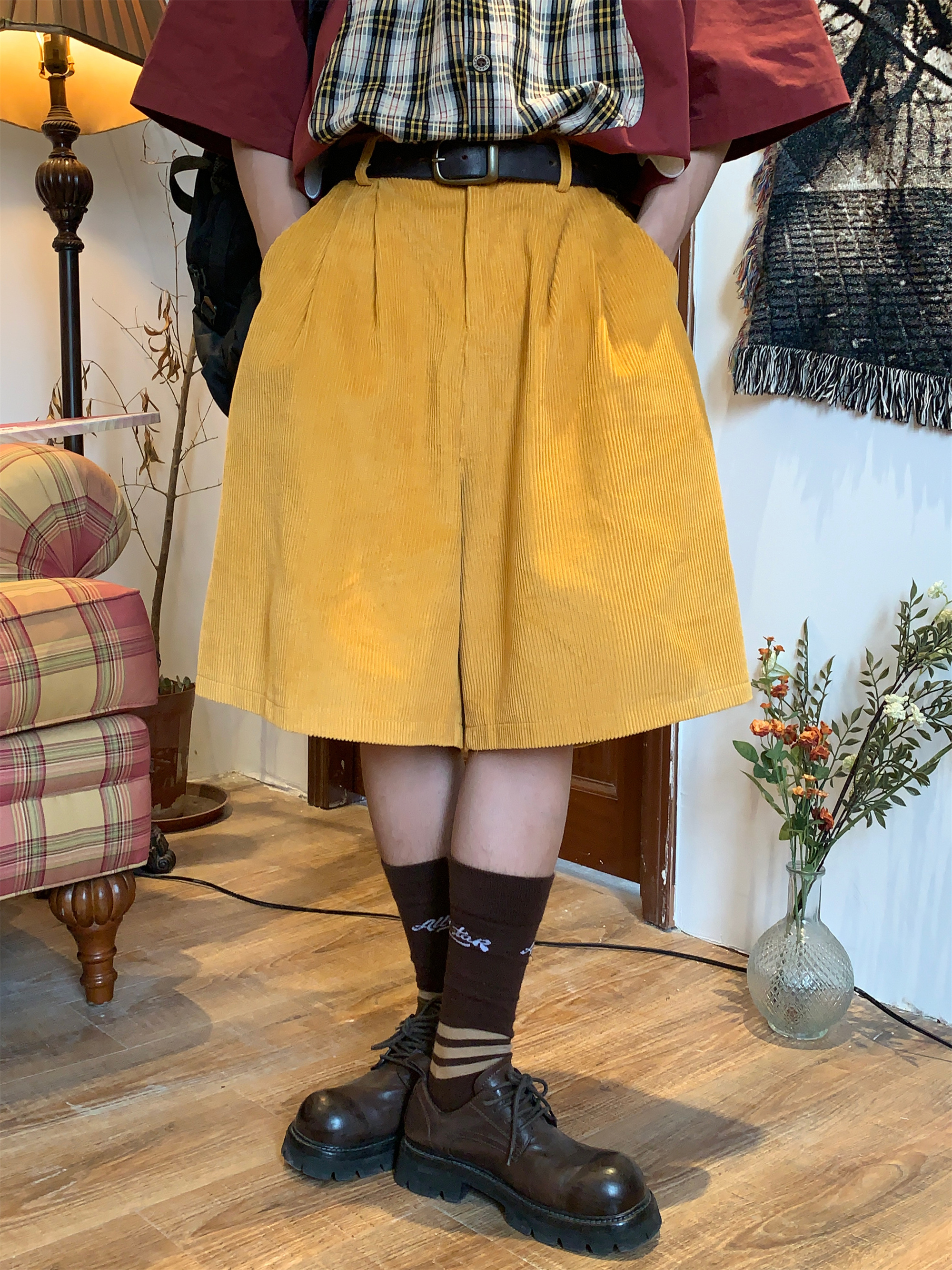 C2自制/日系复古百搭灯芯绒五分裤纯色阔腿裤情侣休闲直筒裤潮牌