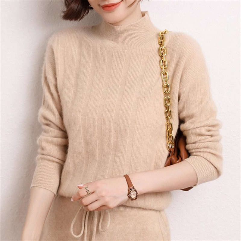 高领100纯羊绒衫女2023秋冬新款加厚上衣套头针织毛衣内搭打底衫