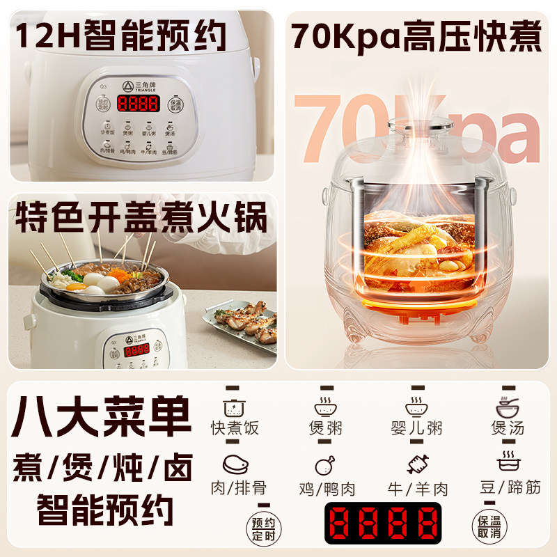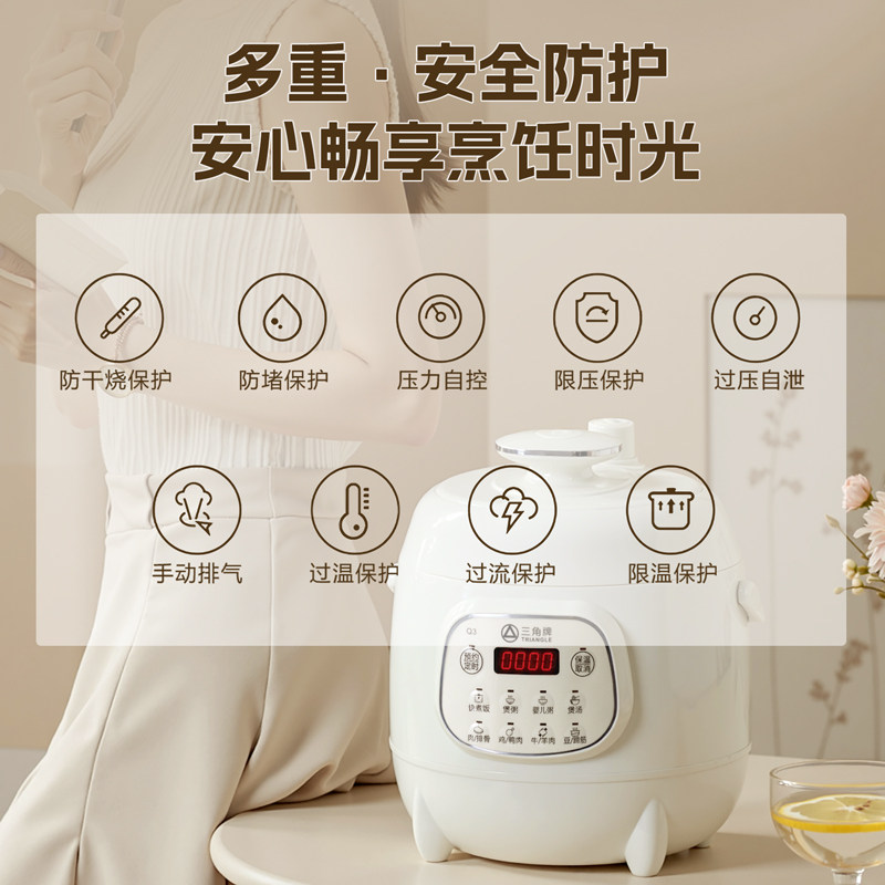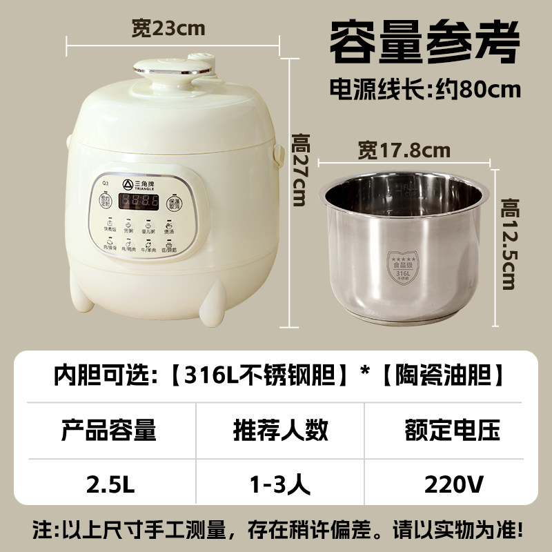 三角牌家用电压力锅小型1-3人迷你高压煲陶瓷油/316L不锈钢内胆