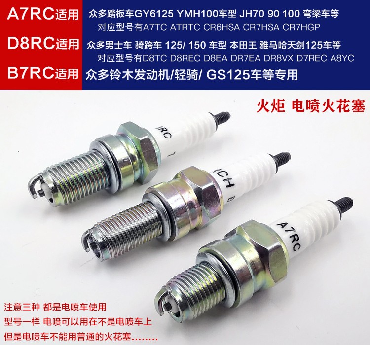 火炬摩托车火花塞D8RT A7RT 70/100/110/125电喷火花塞踏板车火咀