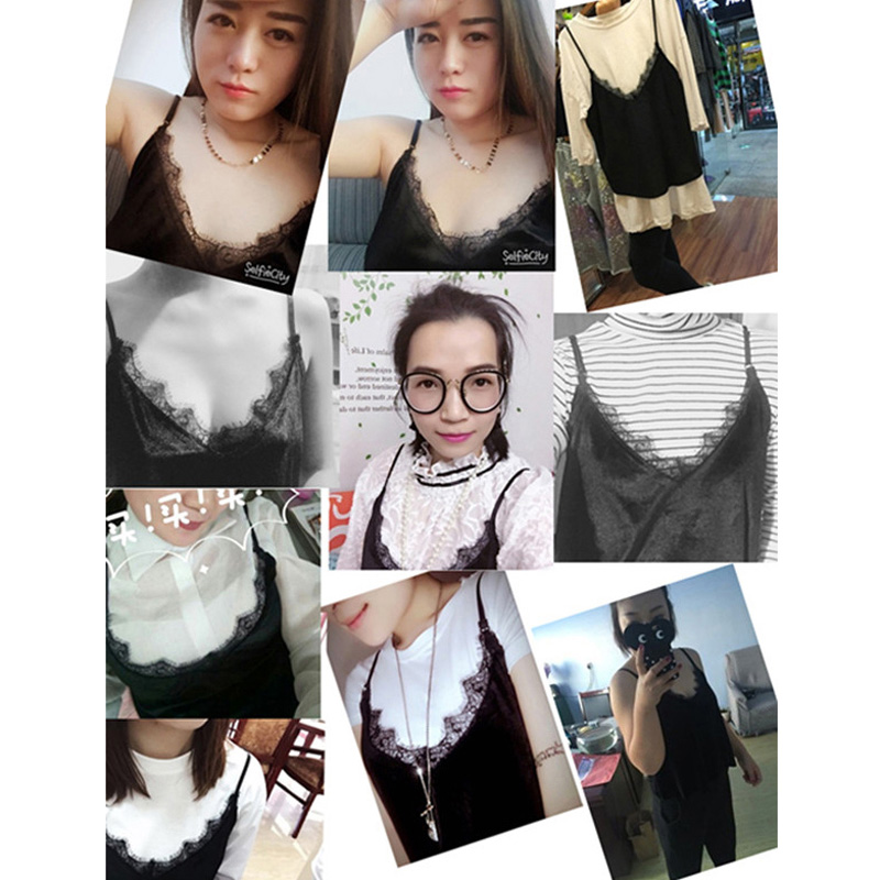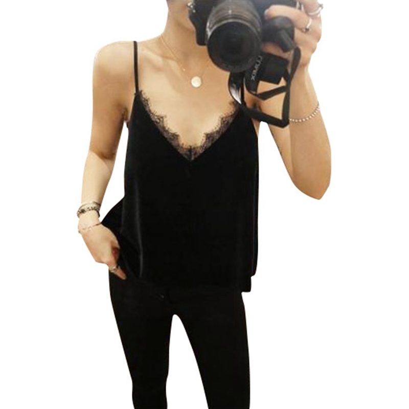 大码金丝绒黑色吊带背心女外穿V领睫毛蕾丝打底衫内搭无袖T恤上衣