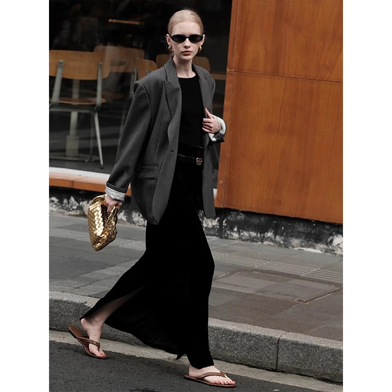 高级感高腰后开叉半身拖地裙