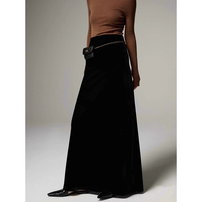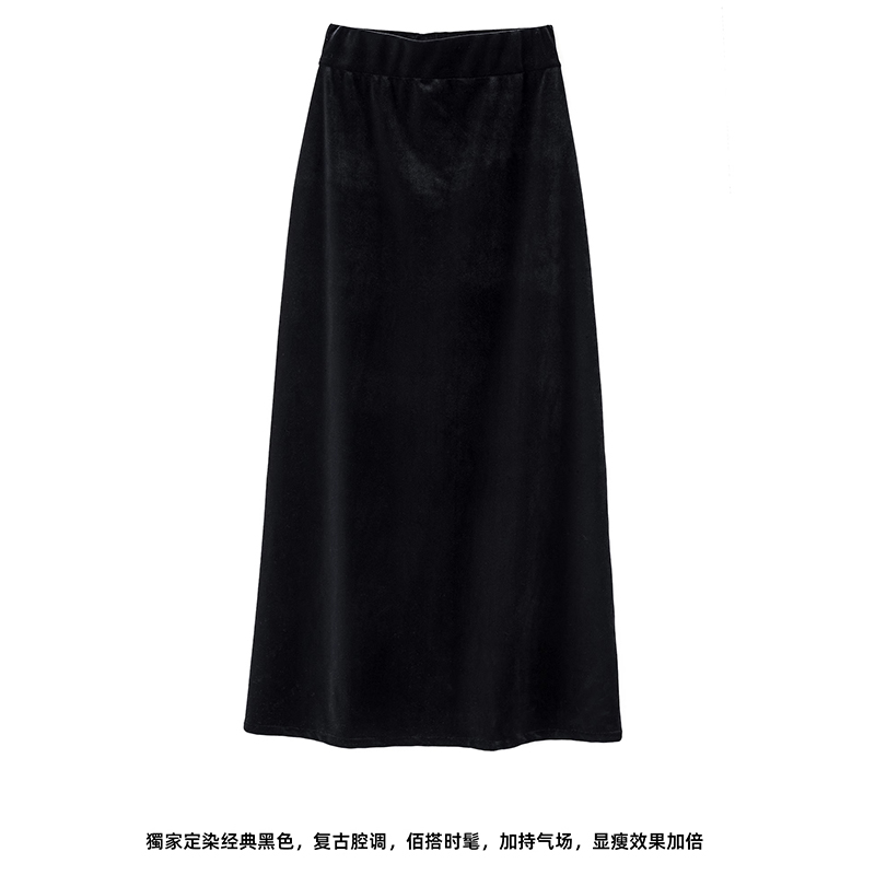 大码高级感丝绒轻奢显瘦长款半身裙女胖妹妹高腰mm宽松开叉拖地裙