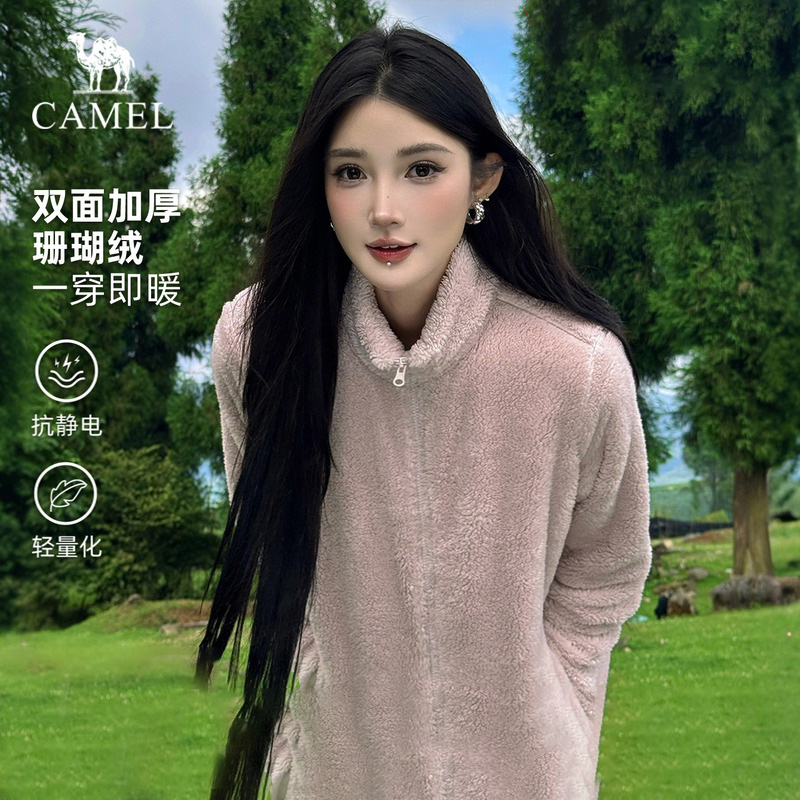 骆驼女装抓绒外套女2025秋季新款宽松显瘦时尚摇粒绒加厚保暖上衣