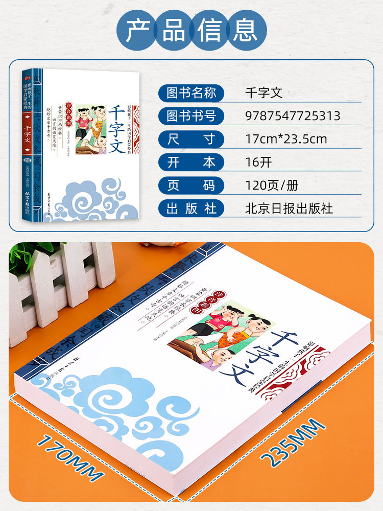 千字文 注音版 小学生彩图版 影响孩子一生的国学启蒙读物儿童版全集原文/注释/译文/小学生课外阅读书一年级二年级课外书儿童文学