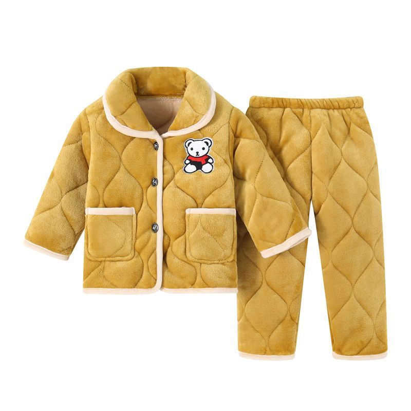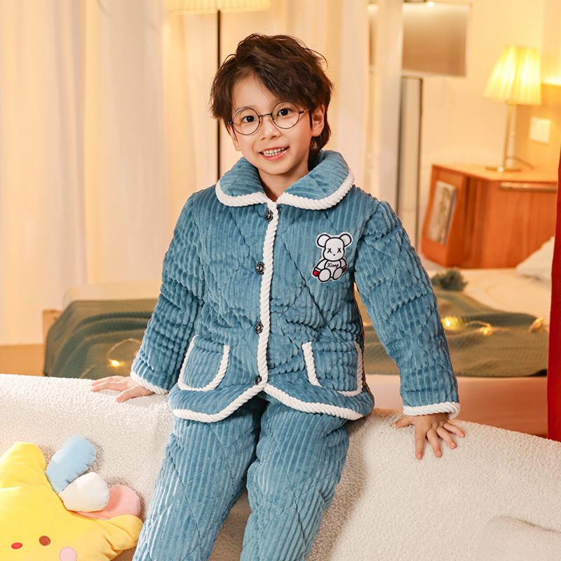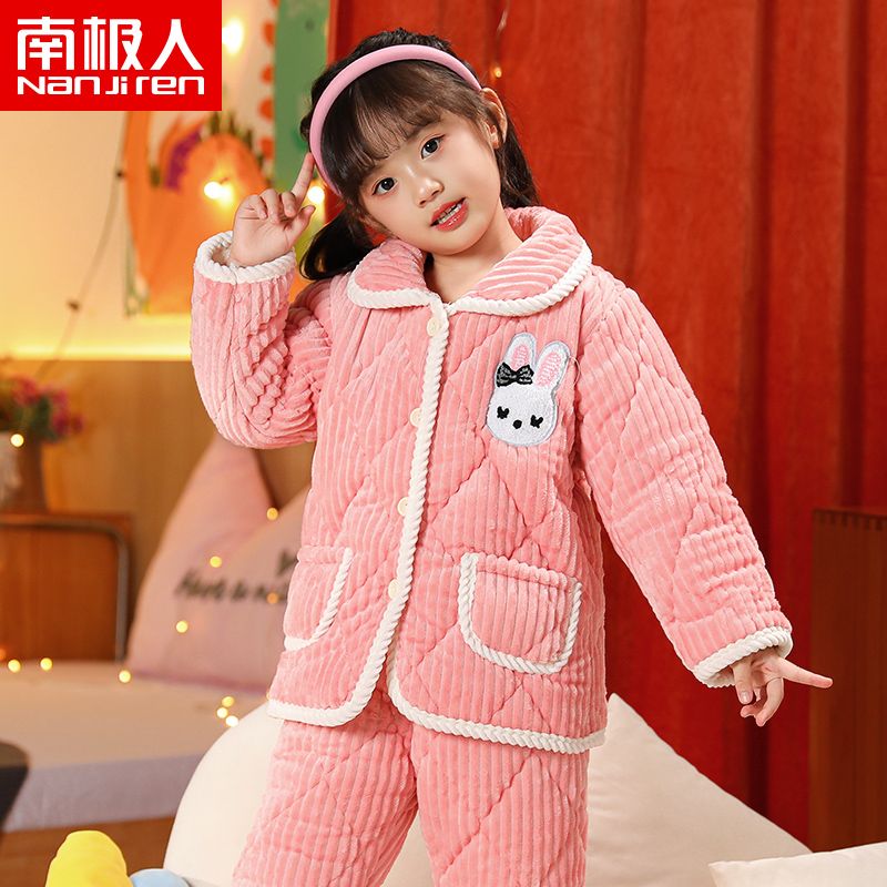 南极人新款冬季儿童睡衣三层夹棉加厚款男童女童法兰绒大童珊瑚绒