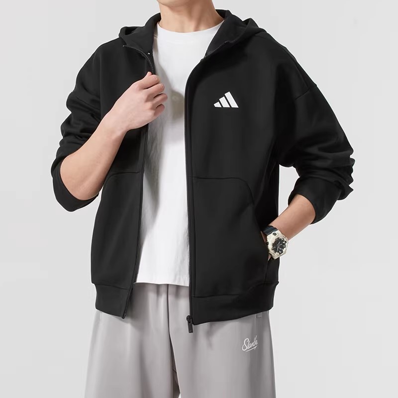 阿迪达斯外套男2025秋季新款防风运动服男士宽松针织加厚连帽夹克