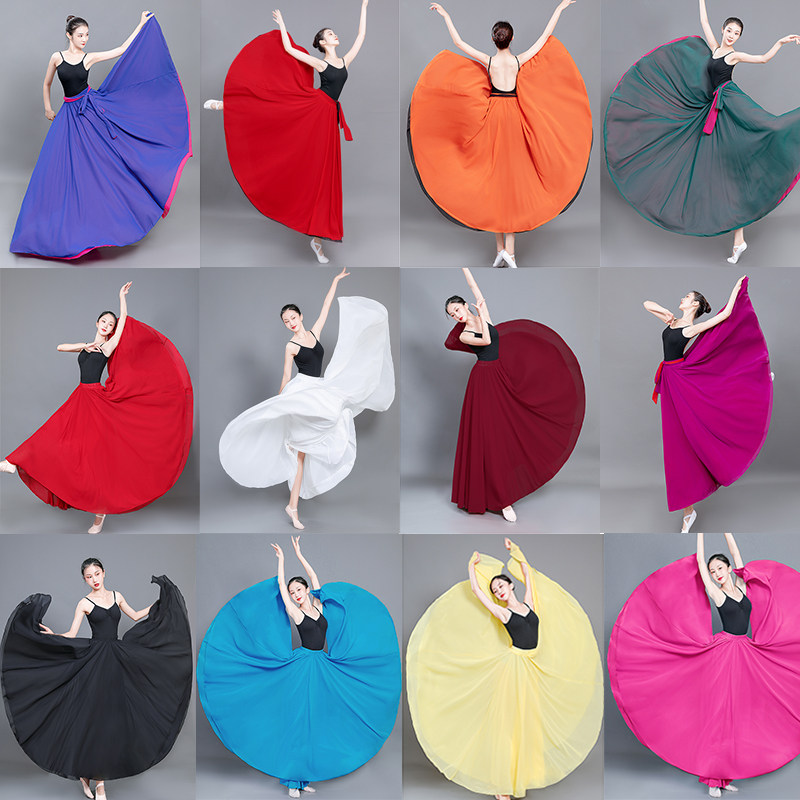 720度大摆舞蹈裙双层雪纺古典舞演出服度假沙滩裙新疆舞半身长裙