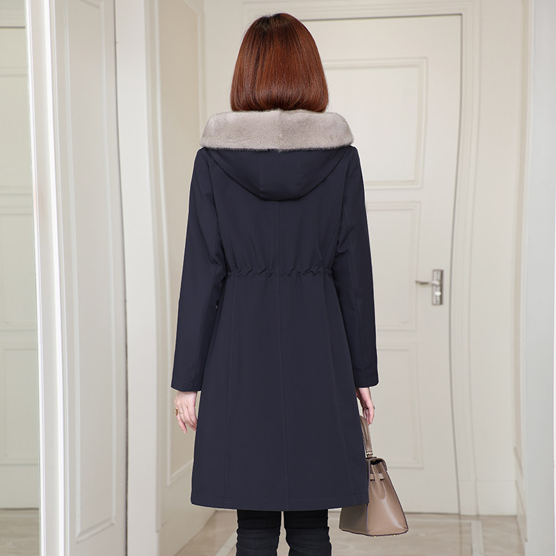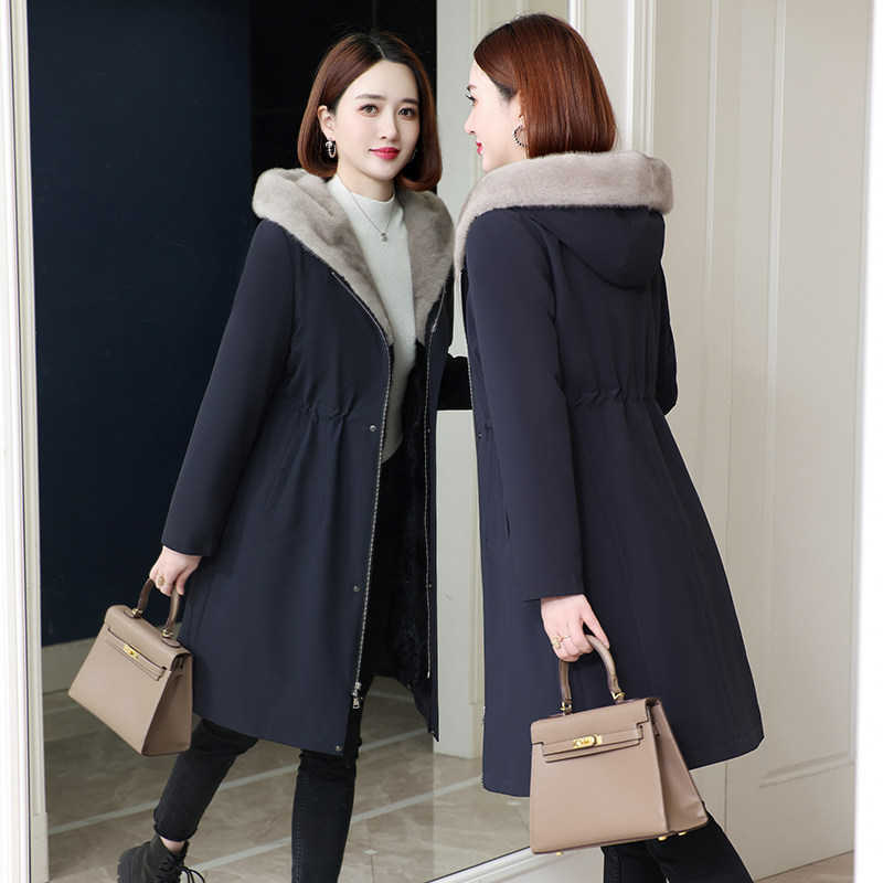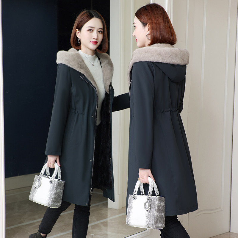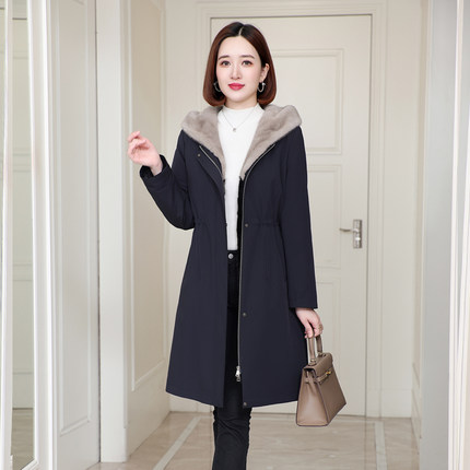 派克服女冬季新款修身水貂内胆可拆卸海宁皮草尼克服外套中长款