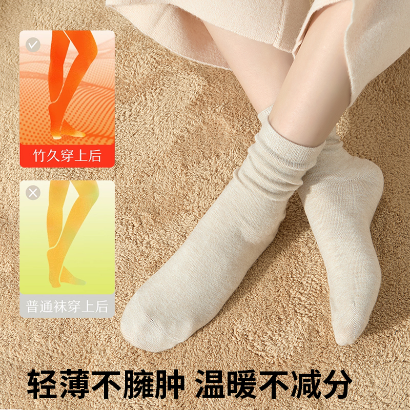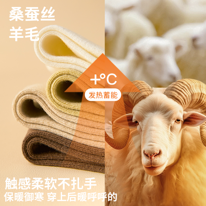猫人桑蚕丝羊毛袜子女款秋冬季加绒加厚保暖不臃肿无骨月子袜