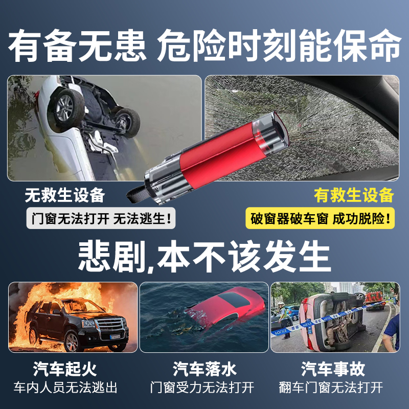 多功能车窗破窗器带割刀水下应急专业逃生车载汽车安全锤自救神器