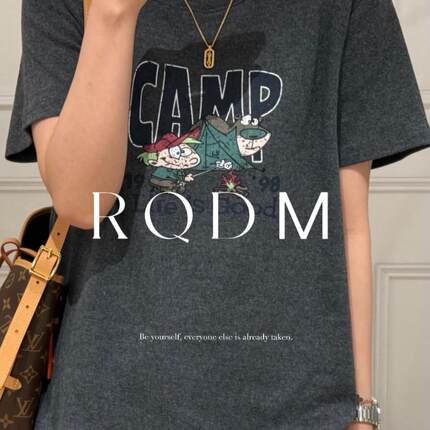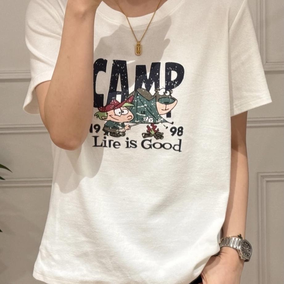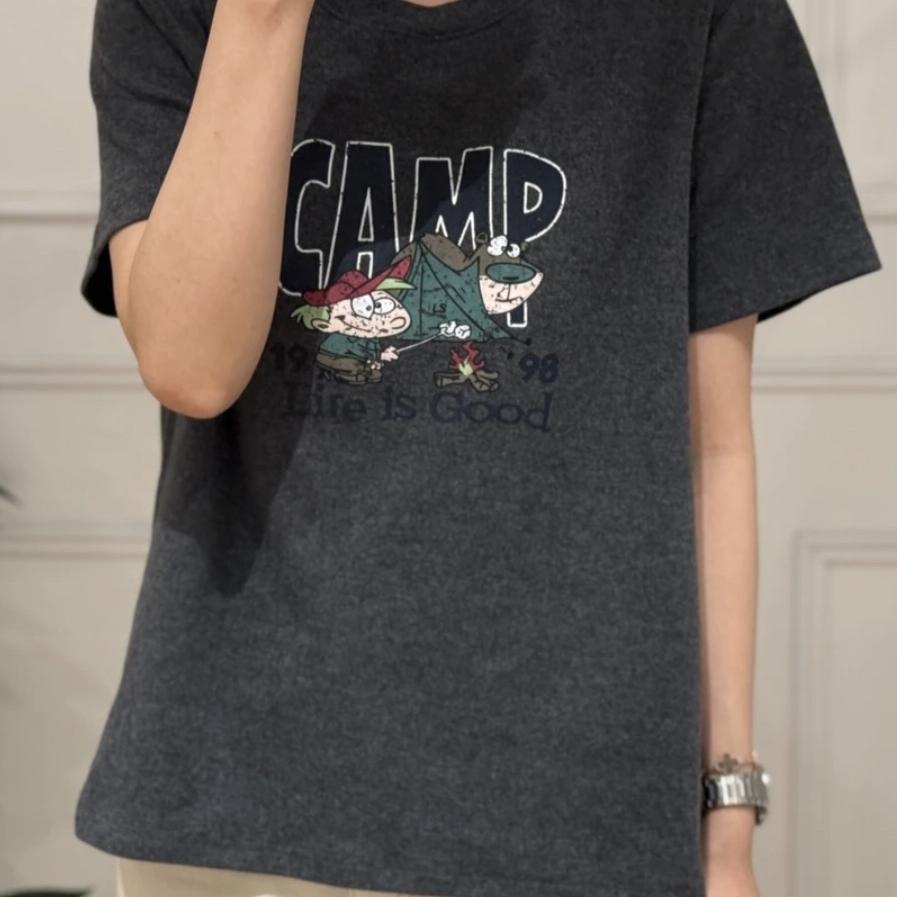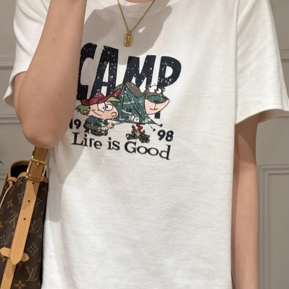 宽松卡通印花圆领正肩短袖T恤女