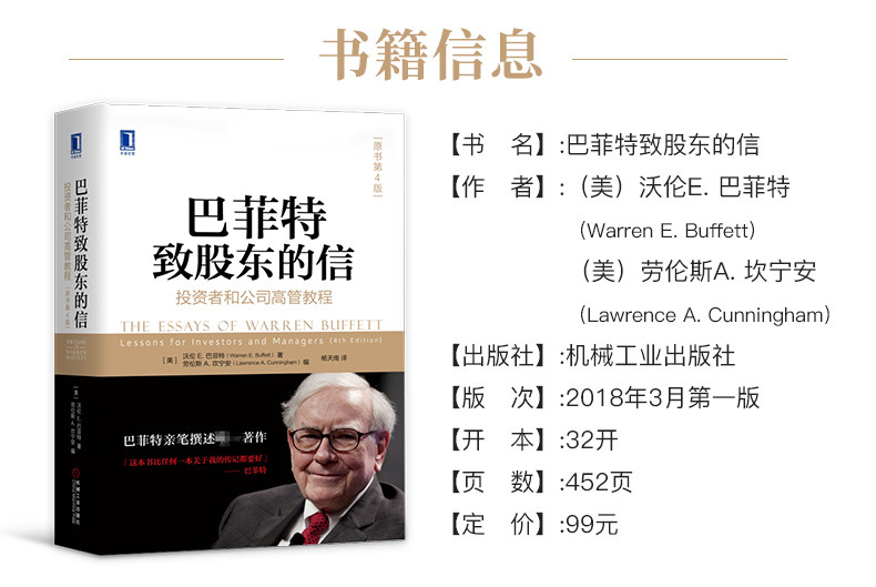 巴菲特致股东的信 杨天南译投资者和公司高管教程原书第四版沃伦巴菲特亲笔撰述金融股市投资理财书籍做聪明的投资者实现财务自由