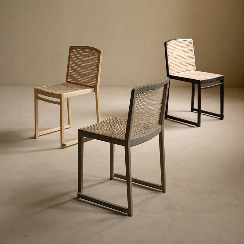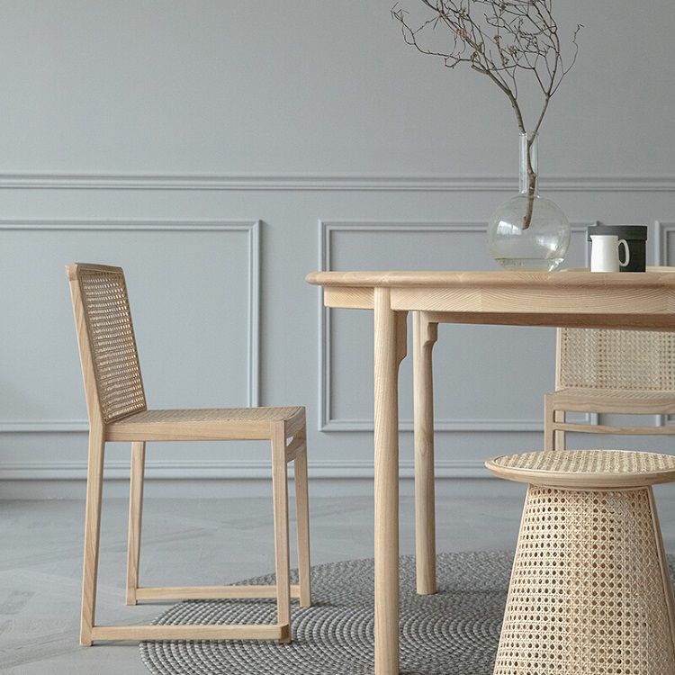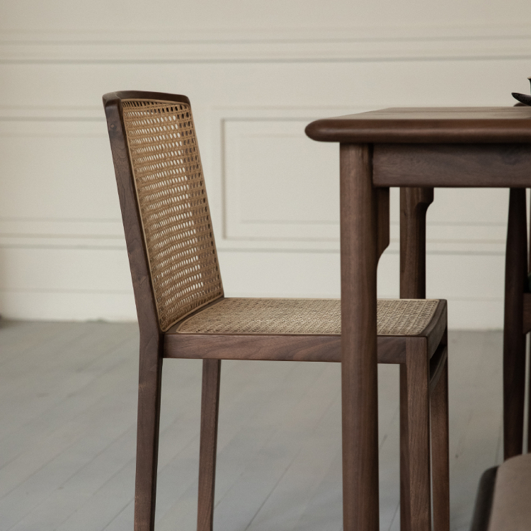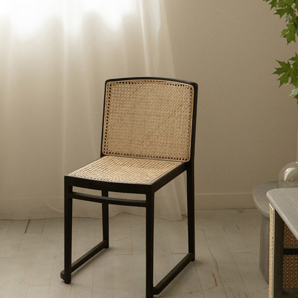 梵几|藤甲叠椅 原木风休闲靠背凳子藤编餐椅家用实木吃饭椅子