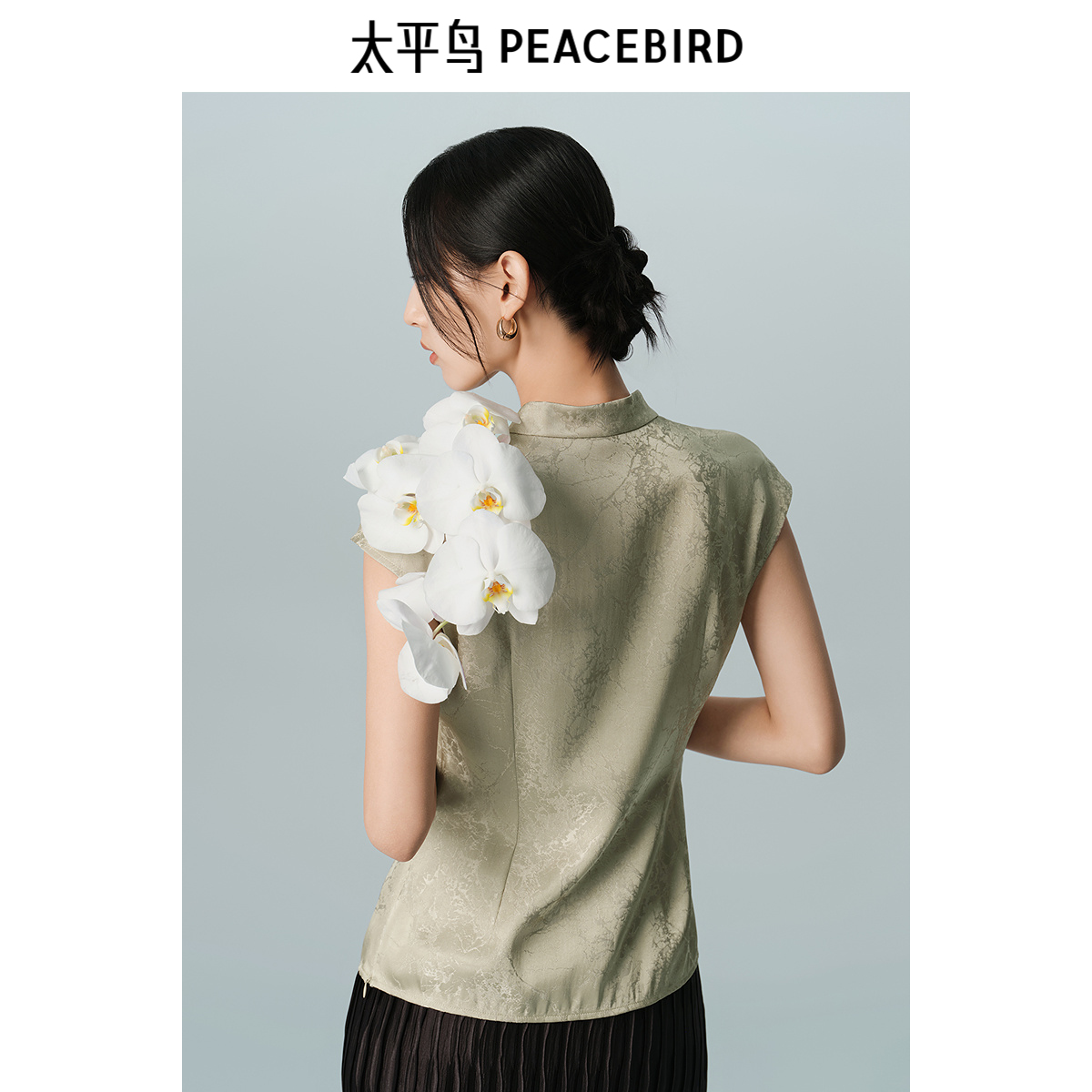 太平鸟新中式无袖立领上衣夏新款女士国风提花旗袍式上装显瘦