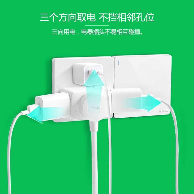 公牛插座转换器扩展一转三迷你1分3三脚插转二孔墙壁插头国标A221