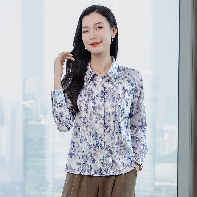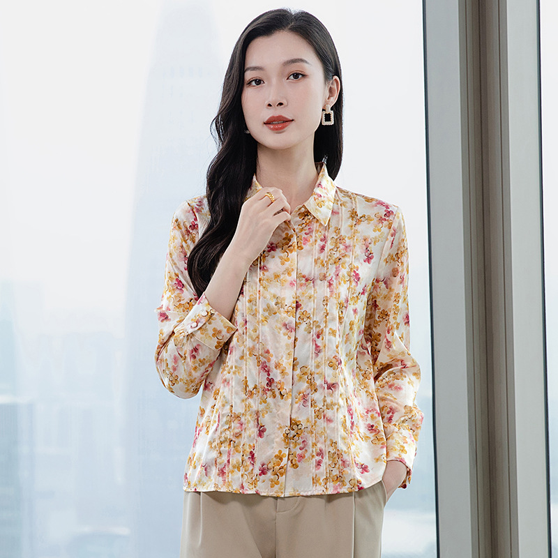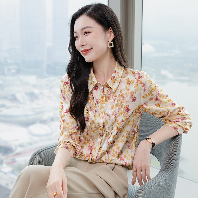 重磅真丝衬衫女长袖2025春新款修身气质桑蚕丝印花小衫上衣A3636