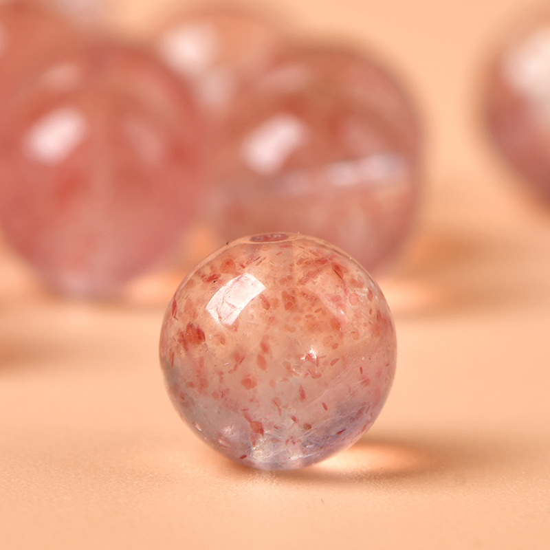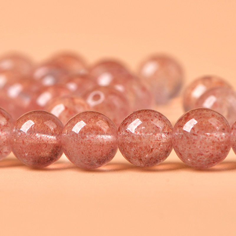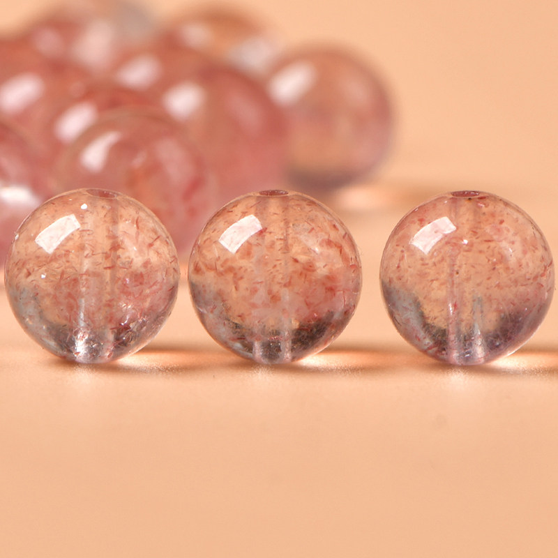 天然冰种白体草莓晶diy手工编织水晶手链串珠粉晶饰品散珠子配件