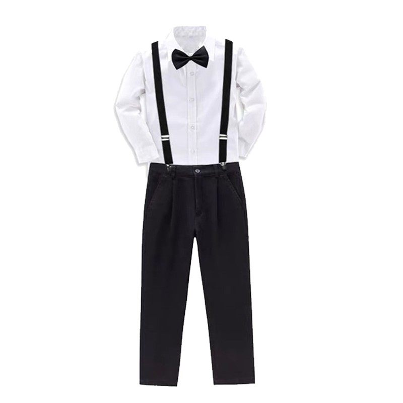 男童演出服加绒白衬衫套装男孩小花童背带裤幼儿园主持人合唱班服
