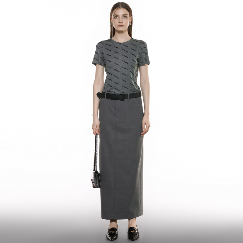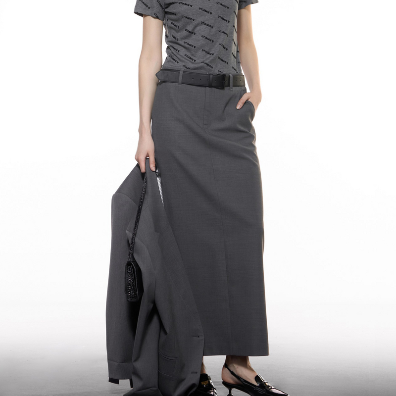 U/TI黑色高质感西装裙半身裙女装简约开衩直筒裙尤缇2025秋季新款