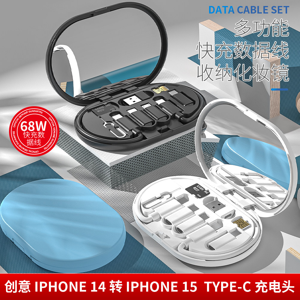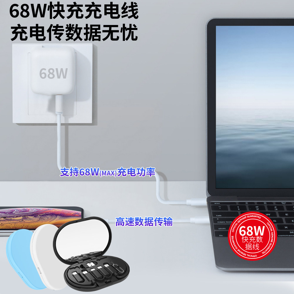 多功能数据盒数据线转换头智能转接头套装收纳68W快充手机sim卡收纳盒装充电线短线便携转换器拔卡针十五合一