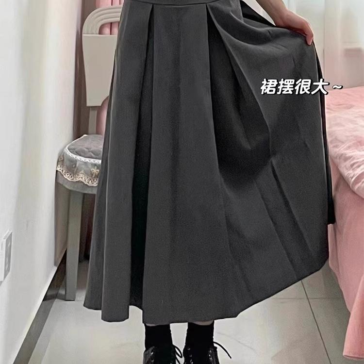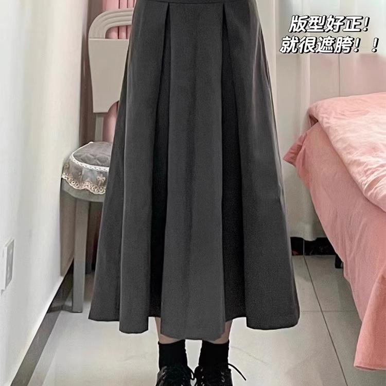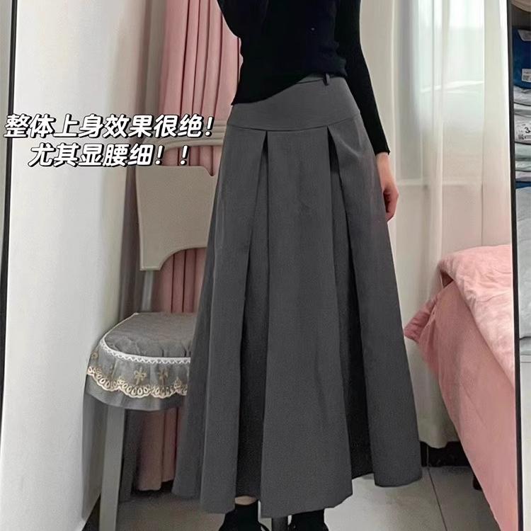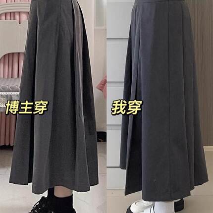 大码胖mm灰色半身裙女2025夏季高腰遮胯A字伞裙中长款西装百褶裙