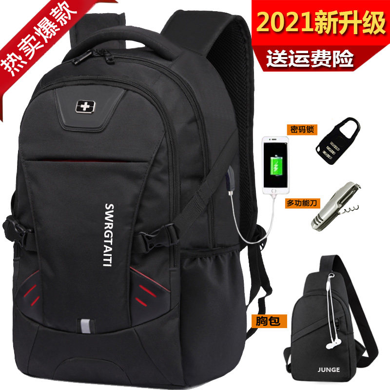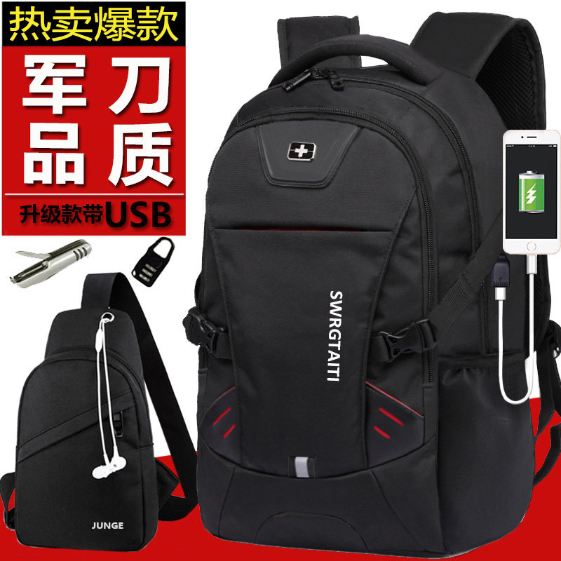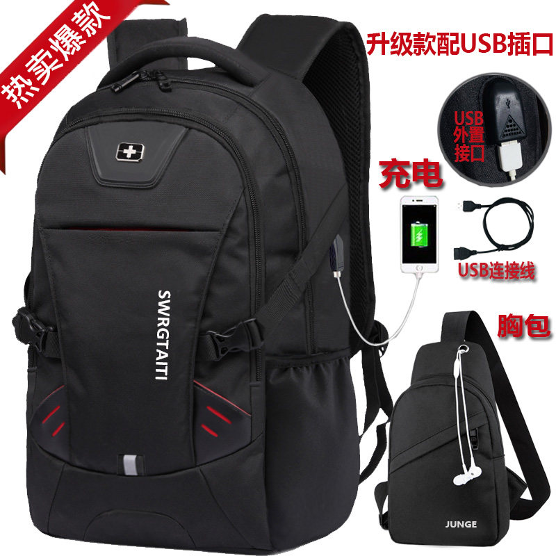 男士瑞士军戈双肩包男士背包韩版大高中学生书包女电脑包大容量